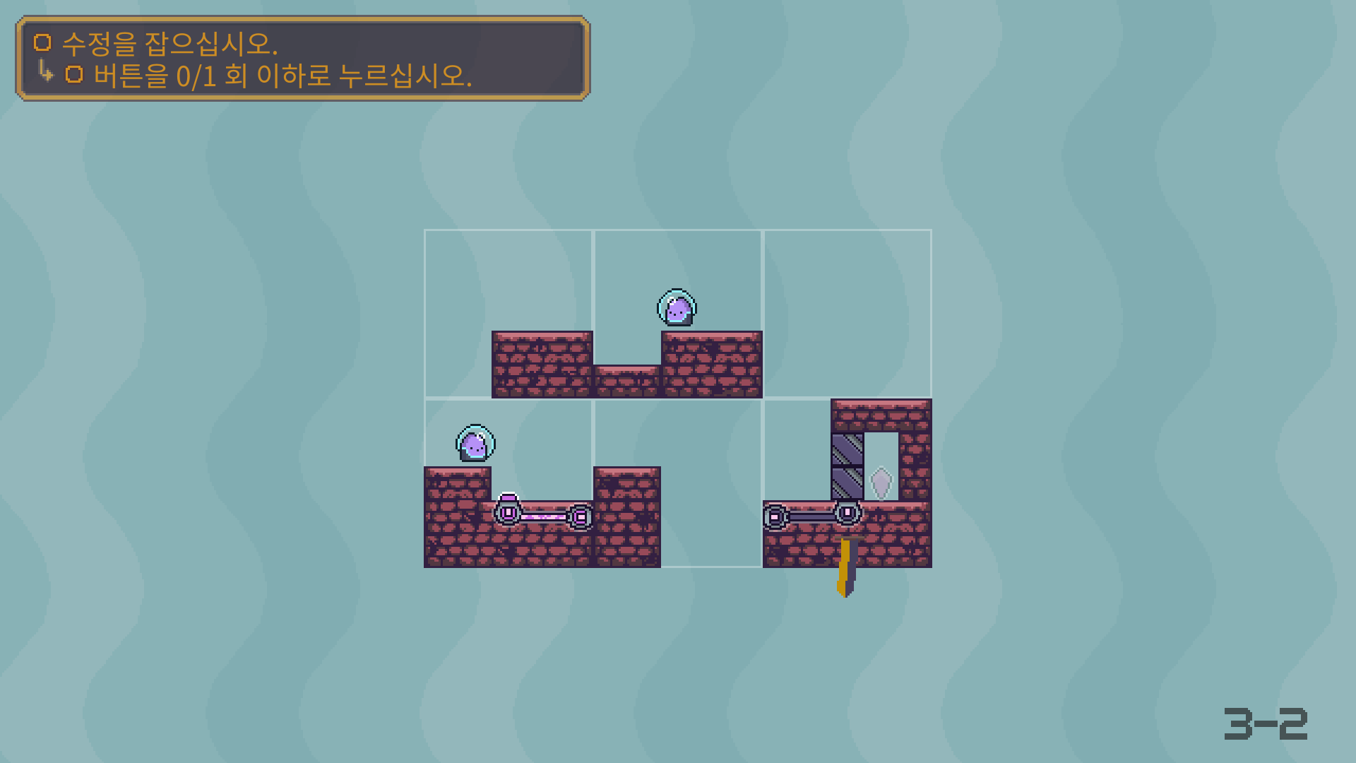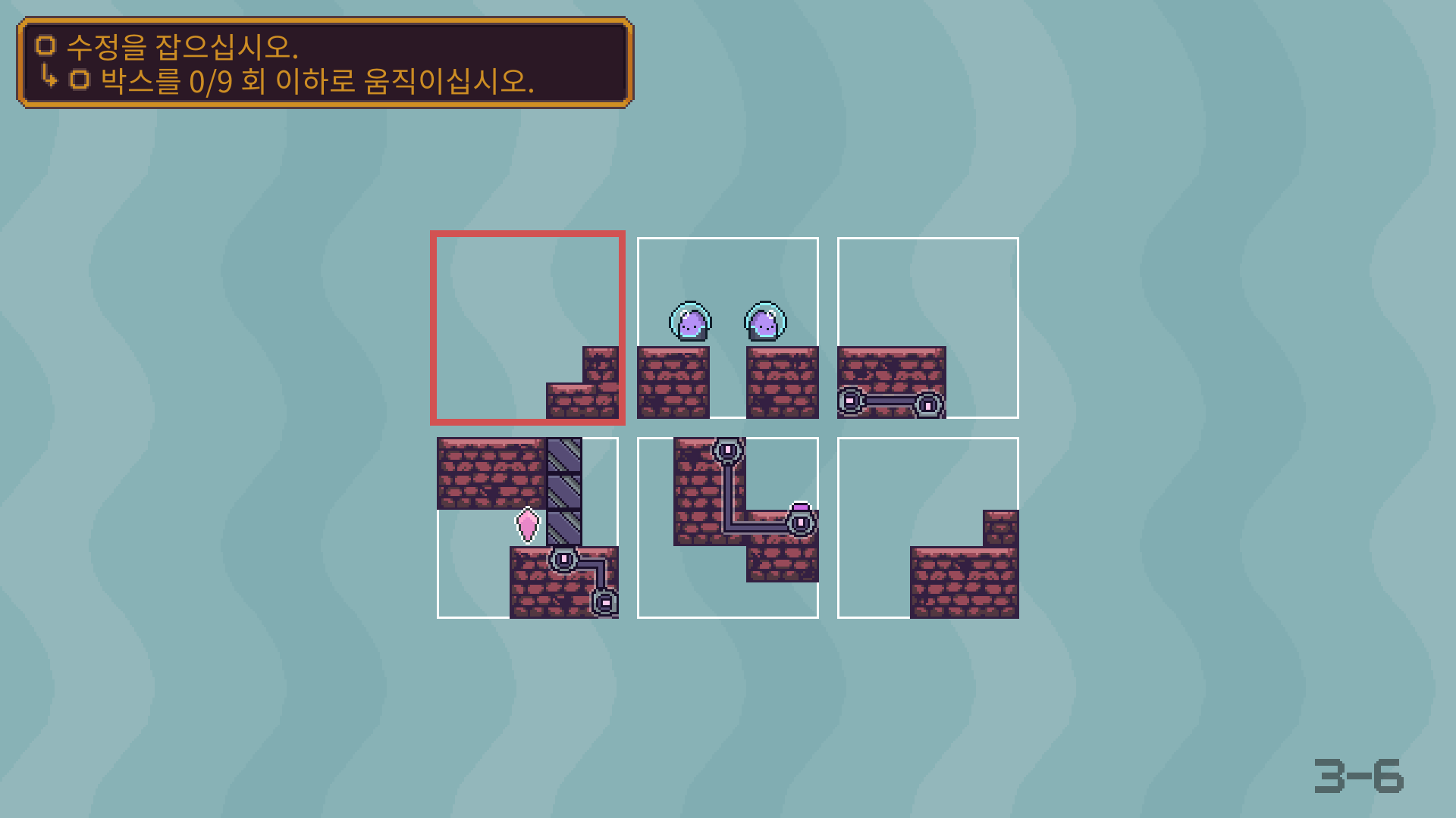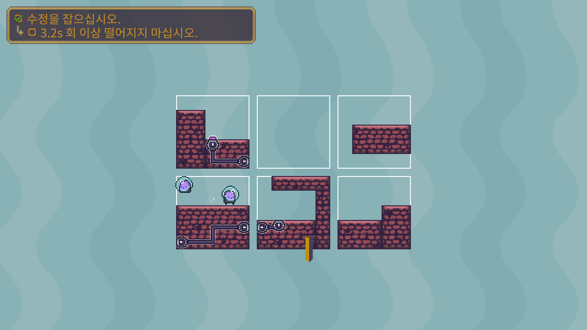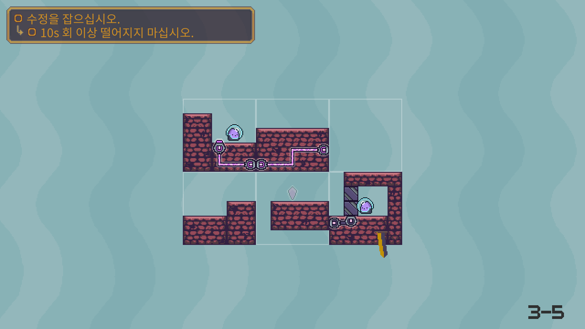 3-5는 버튼을 누른뒤에 수정은 아래로 떨어져서 먹을수 있습니다. 수정을 먹은 뒤에는 두 타니나니를 만나게 하면 됩니다.