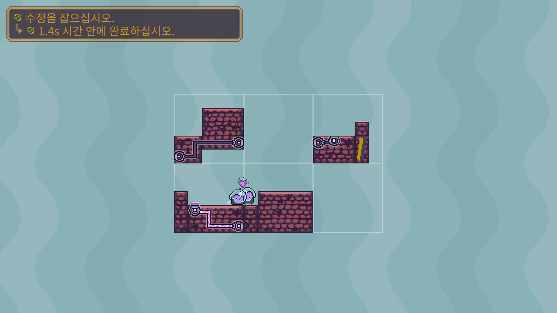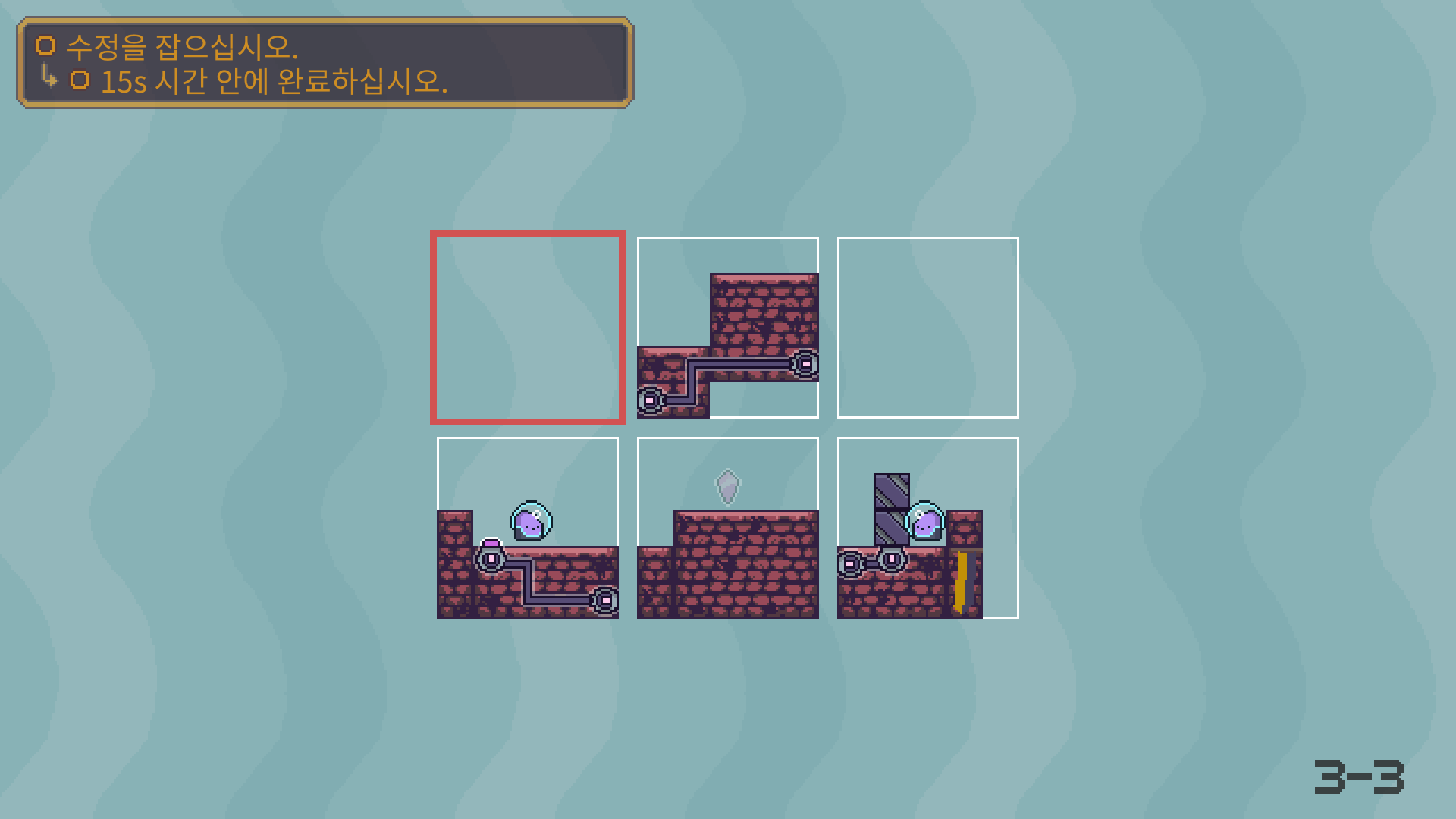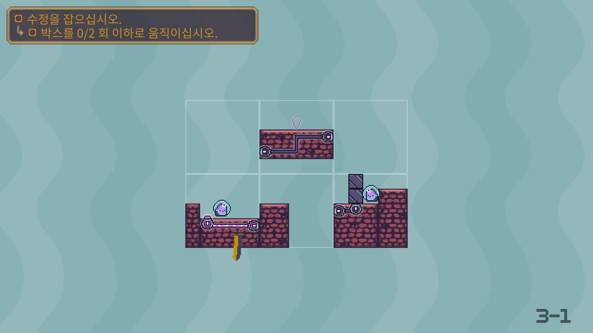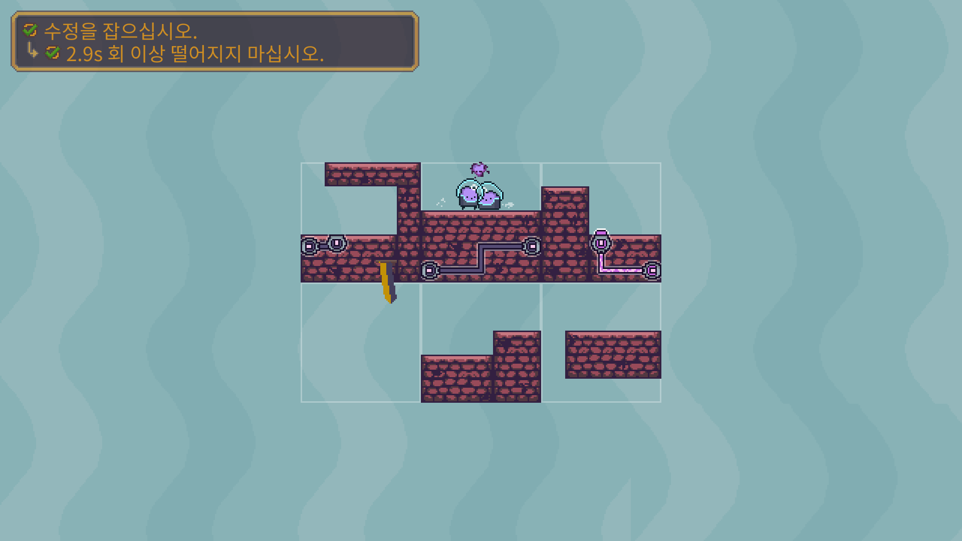 3-5는 버튼을 누른뒤에 수정은 아래로 떨어져서 먹을수 있습니다. 수정을 먹은 뒤에는 두 타니나니를 만나게 하면 됩니다.