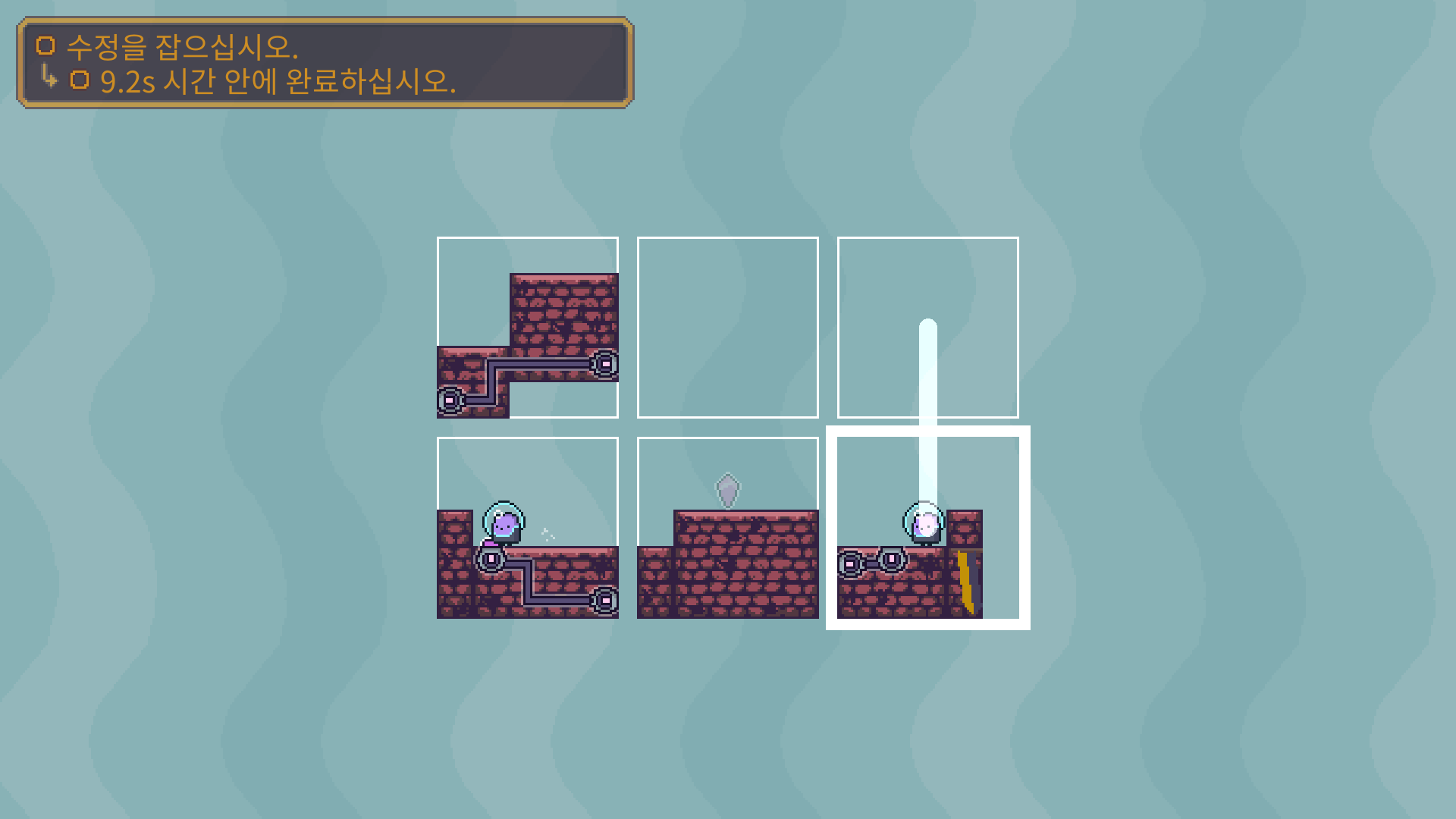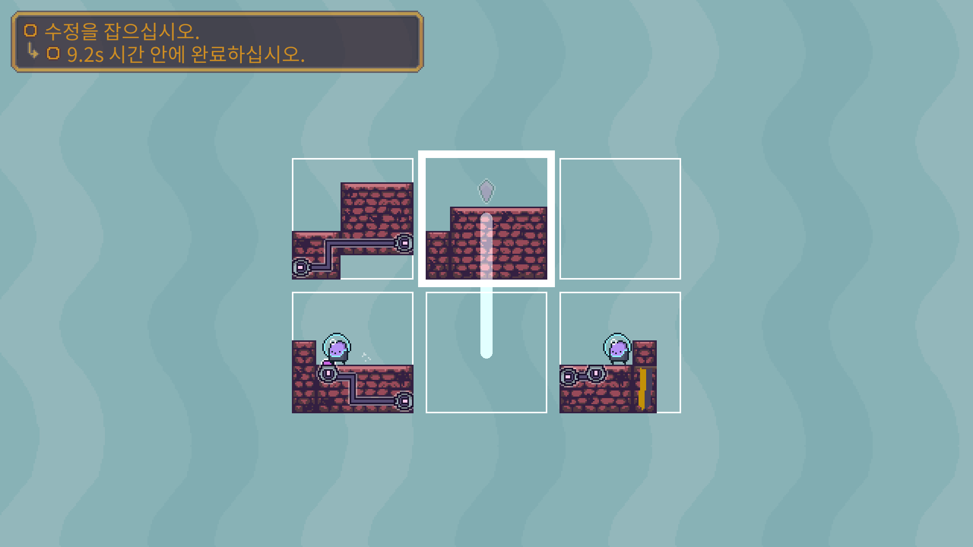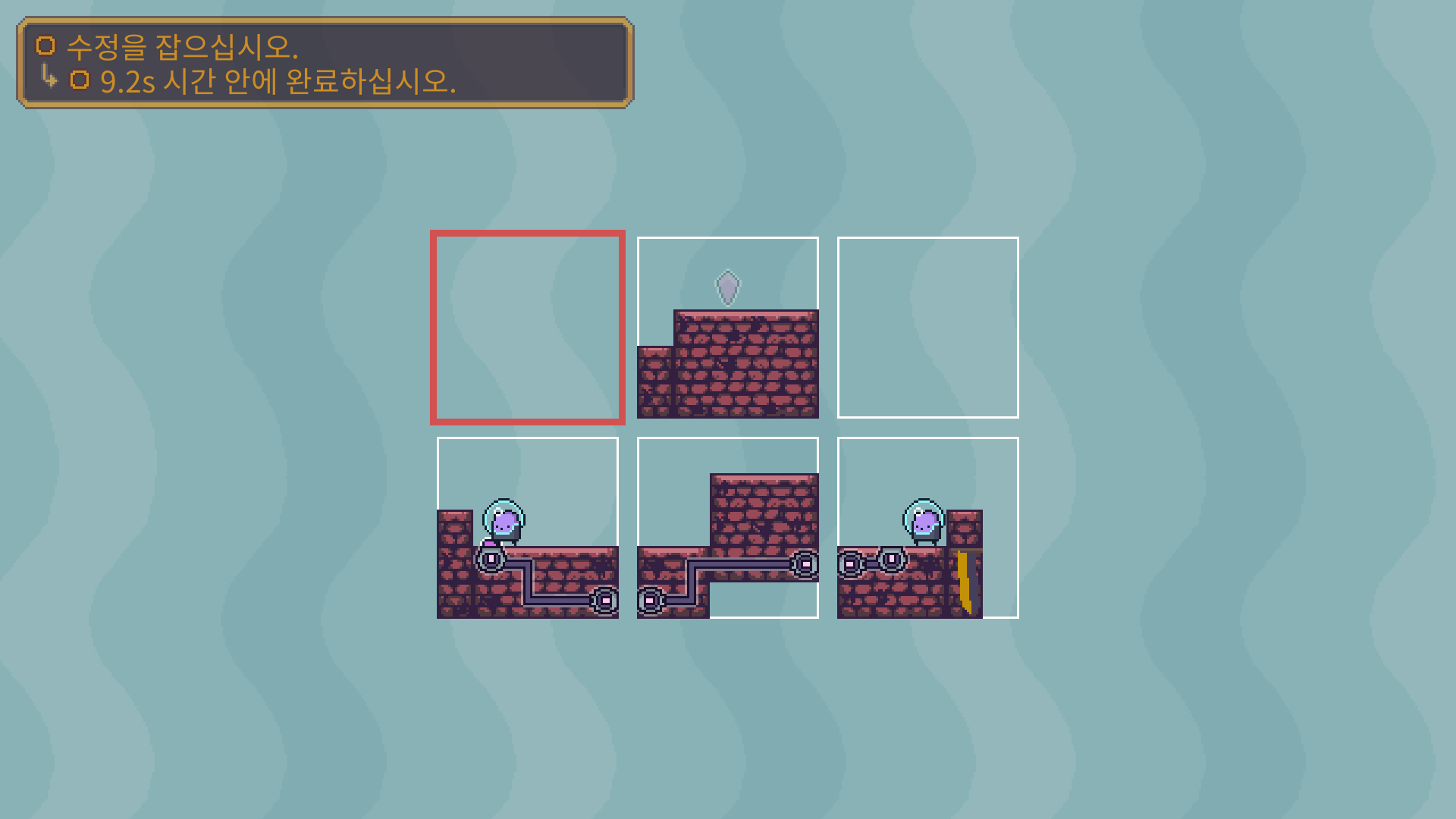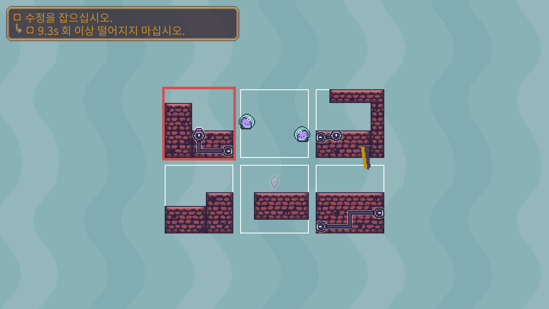 3-5는 버튼을 누른뒤에 수정은 아래로 떨어져서 먹을수 있습니다. 수정을 먹은 뒤에는 두 타니나니를 만나게 하면 됩니다.