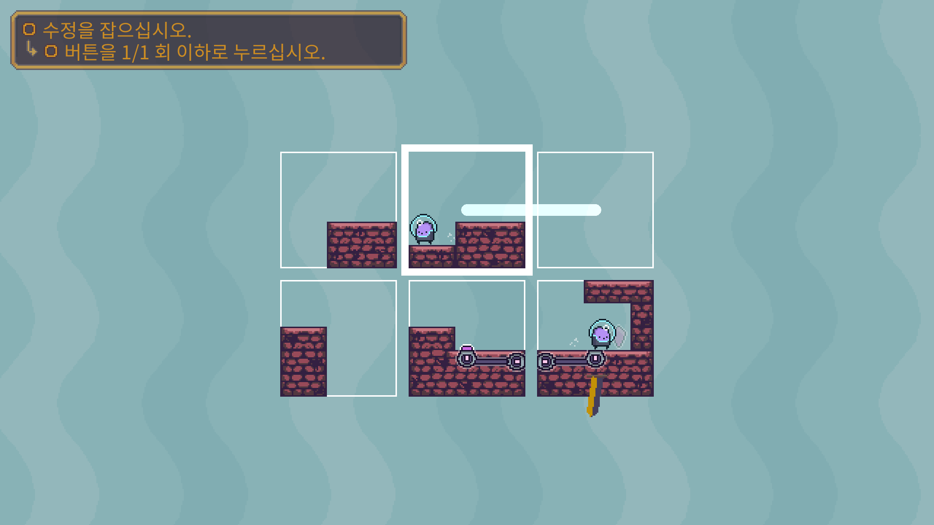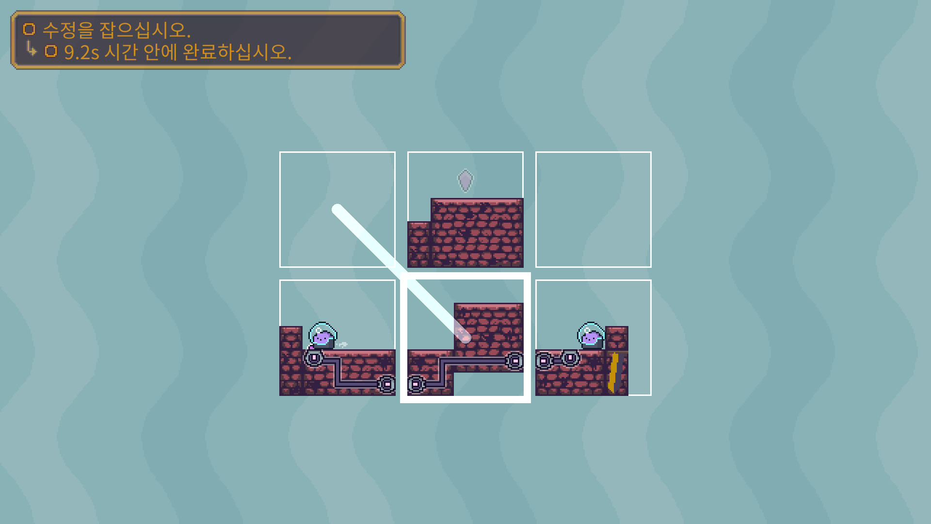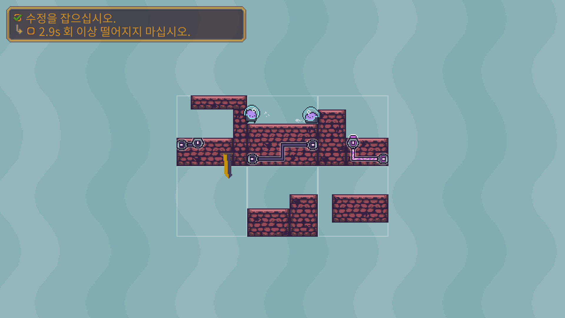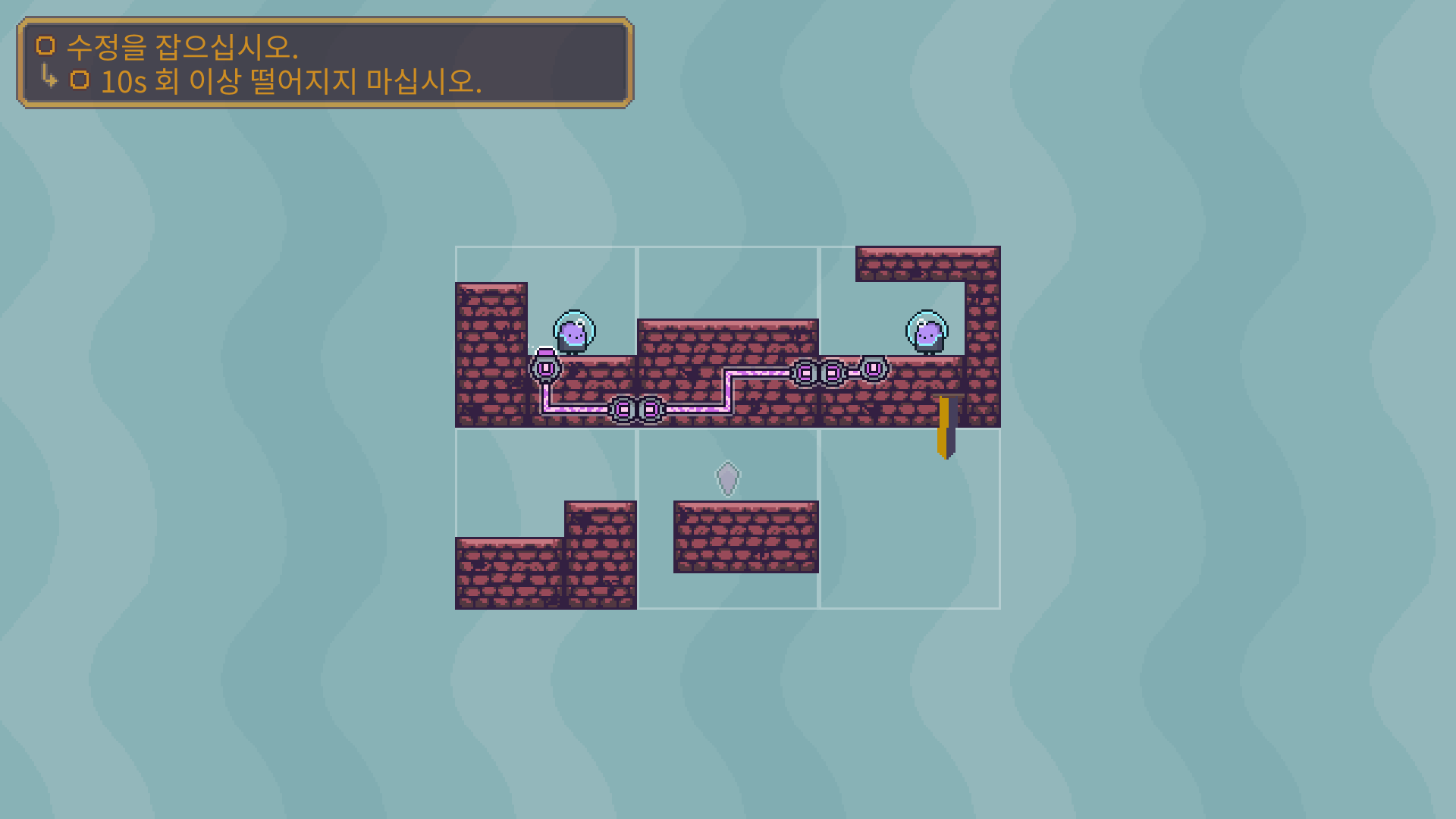 3-5는 버튼을 누른뒤에 수정은 아래로 떨어져서 먹을수 있습니다. 수정을 먹은 뒤에는 두 타니나니를 만나게 하면 됩니다.