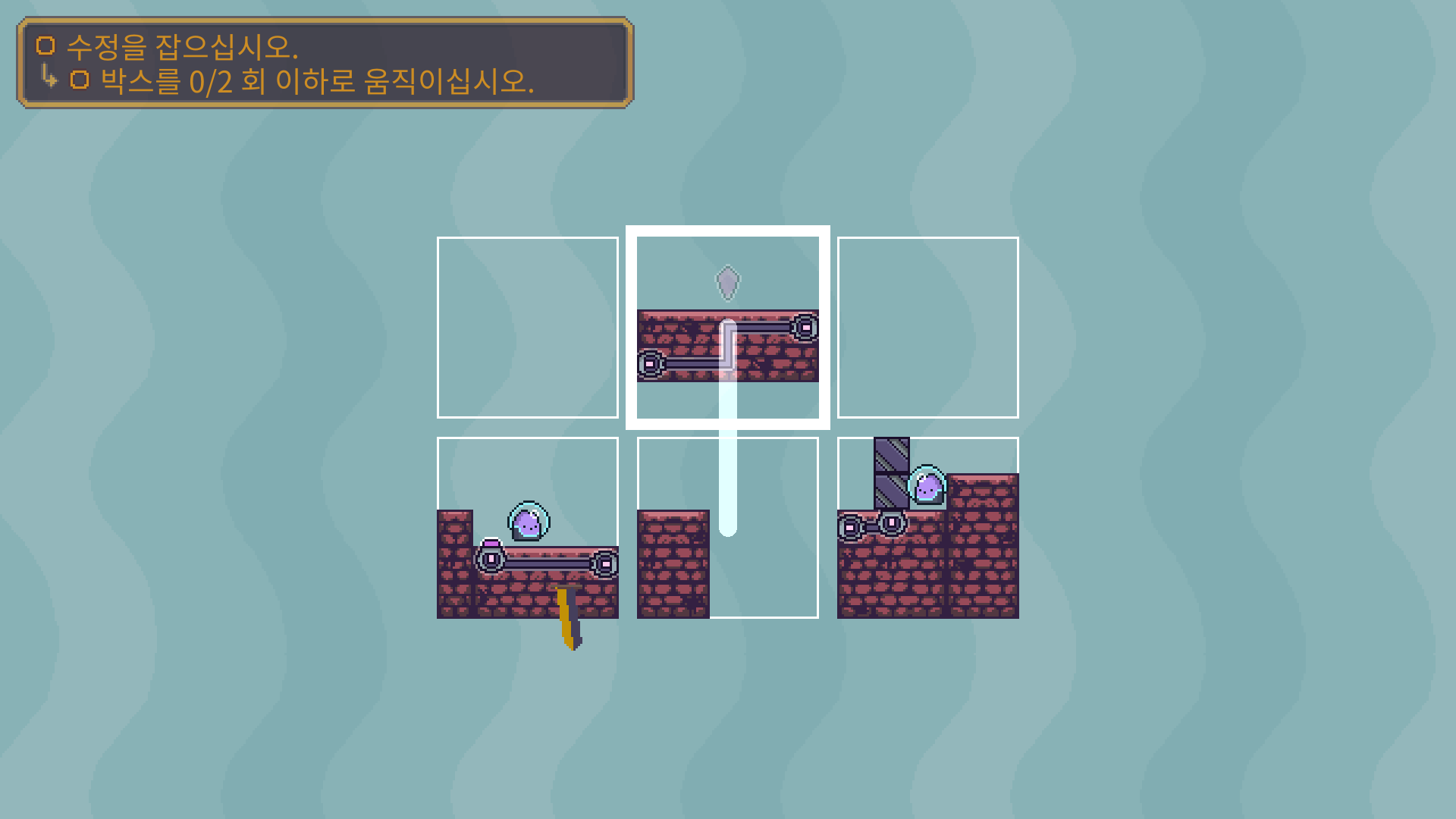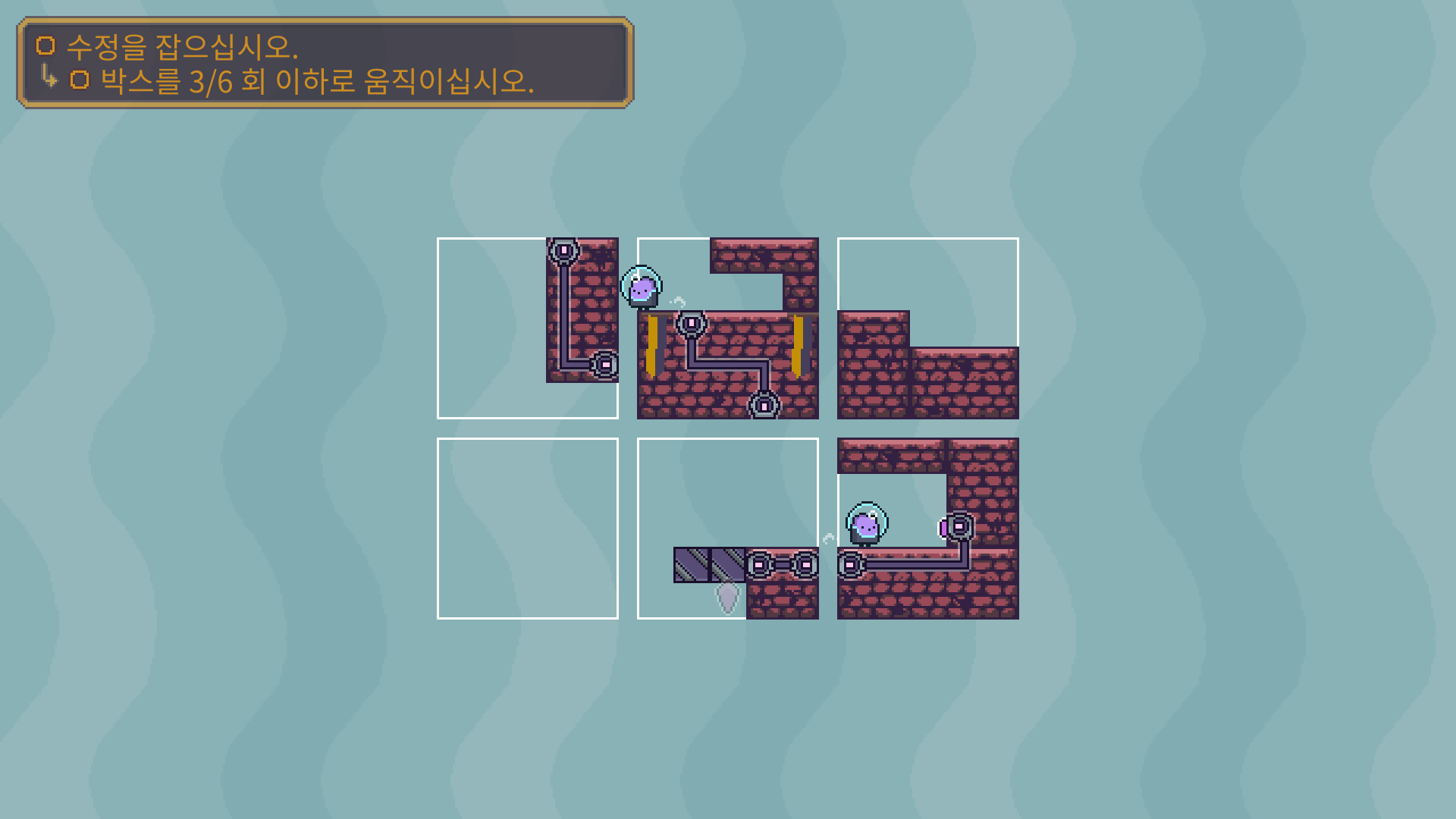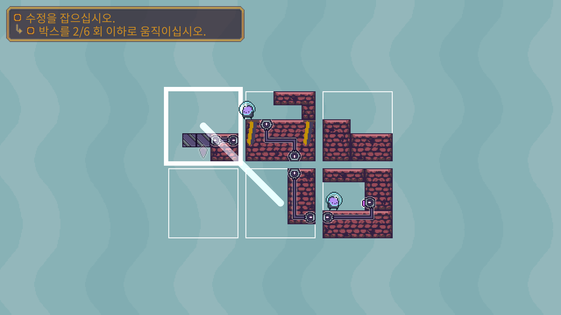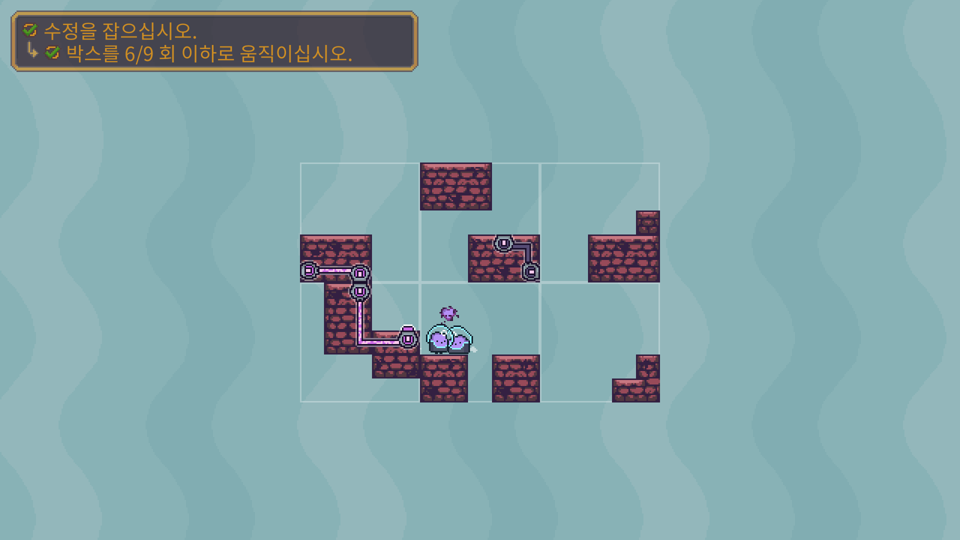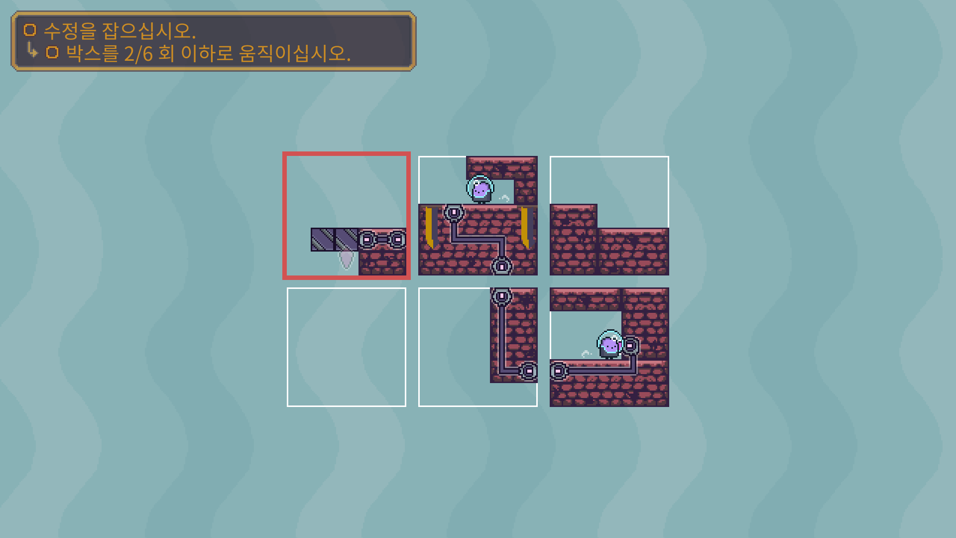 두개의 장애물을 해체 한 다음에 박스를 적절이 바꿔 둘이 만나도록 유도해야 합니다.
