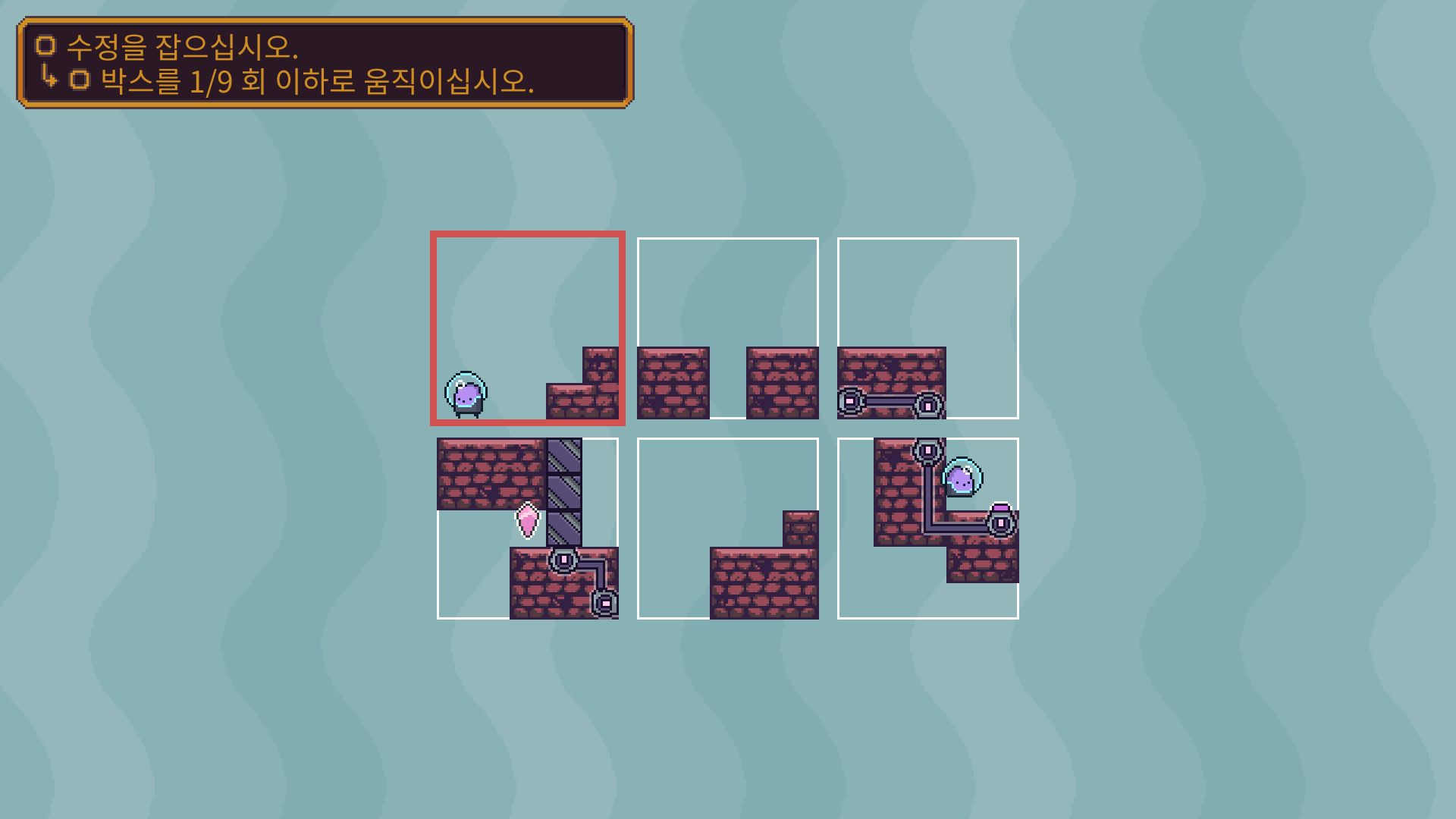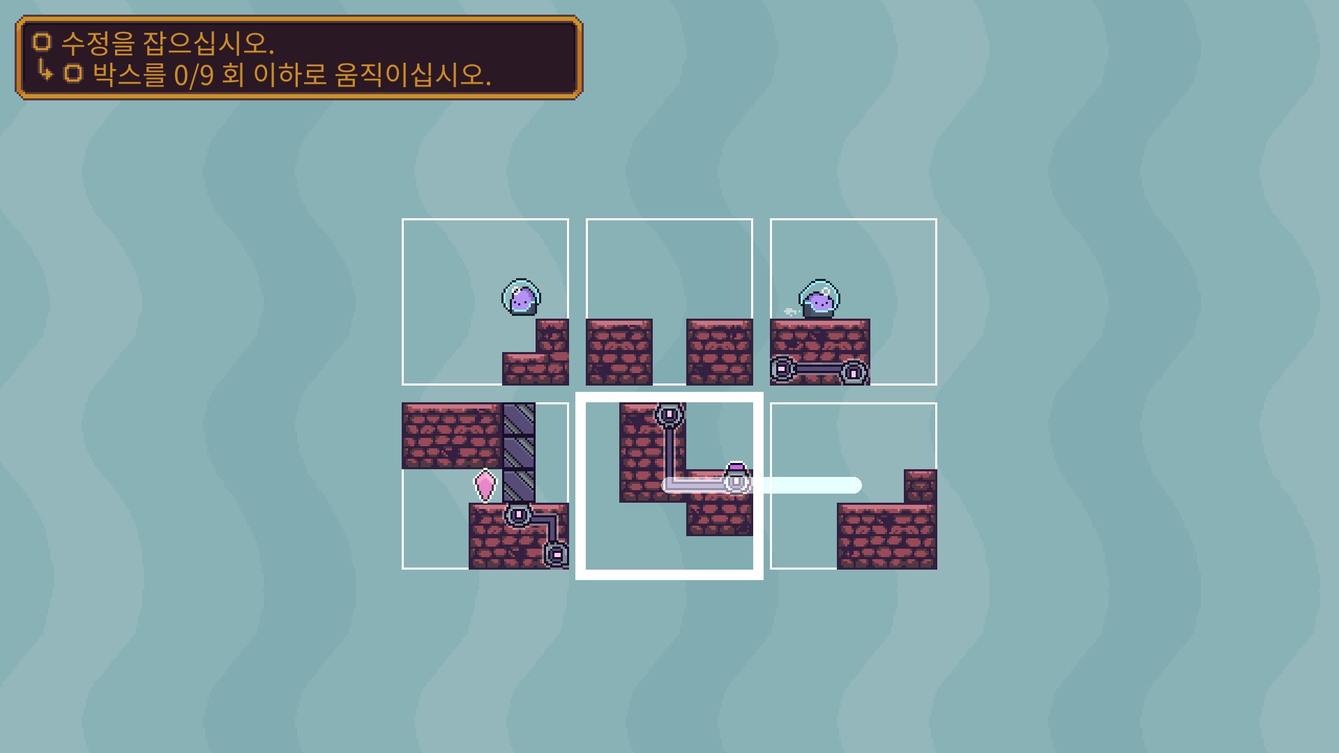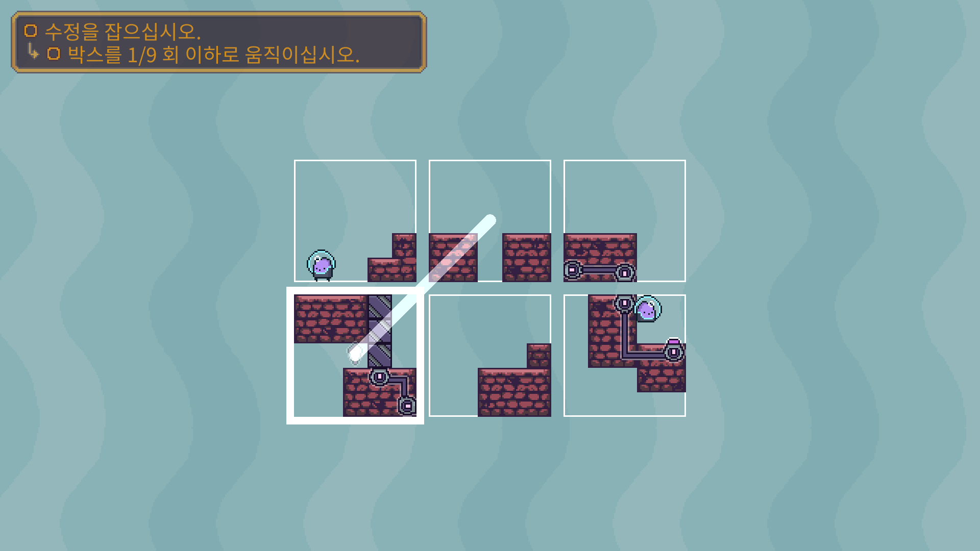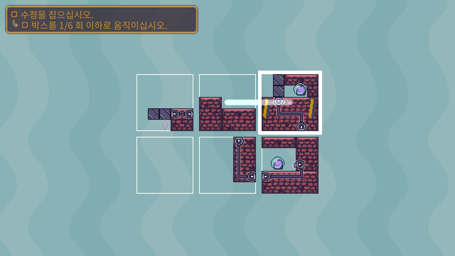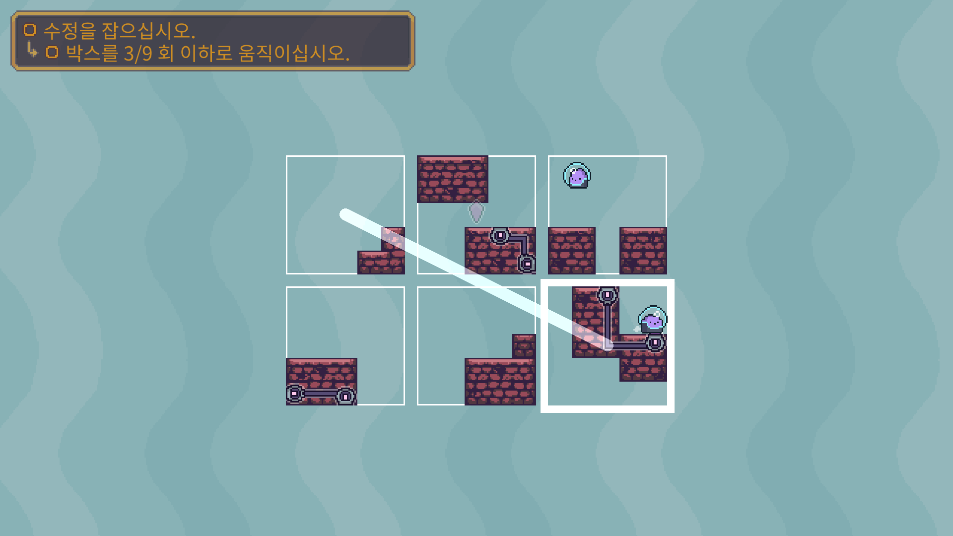 두개의 장애물을 해체 한 다음에 박스를 적절이 바꿔 둘이 만나도록 유도해야 합니다.