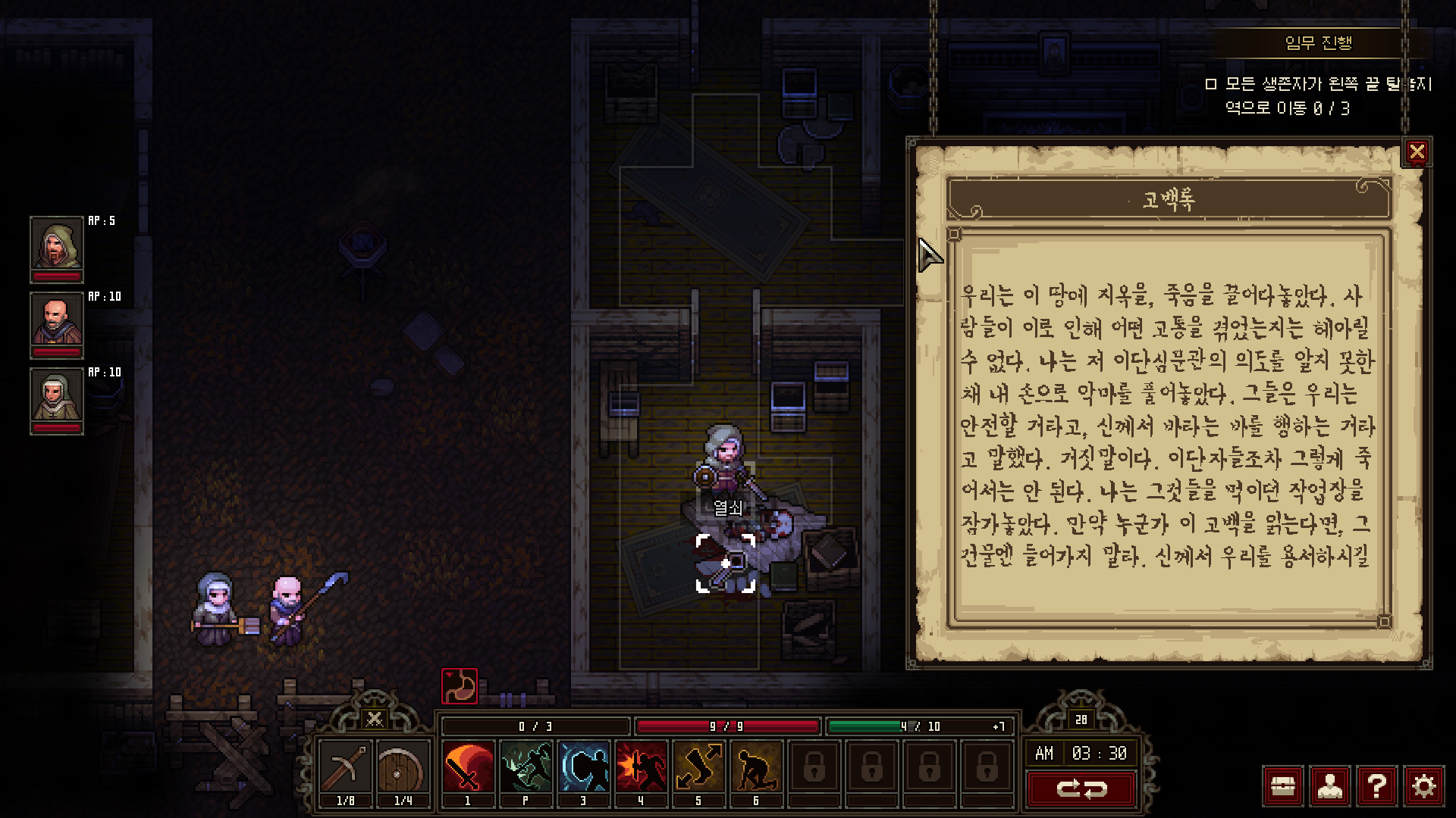 마지막에 바리케이트 건너편의 병사가 캐릭터 발견해서 부수고 쫓아온 거 아녔으면 영영 못깼을지도 모르겠습니다.ㅋㅋ;