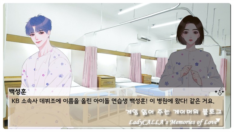 같은 층의 다른 다인실 병실에는 '백성훈'이라는 유명 연예 기획사에서 아이돌 데뷔를 준비 중인 연습생 오빠도 있다.