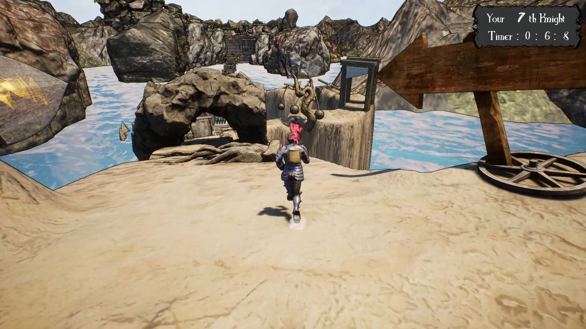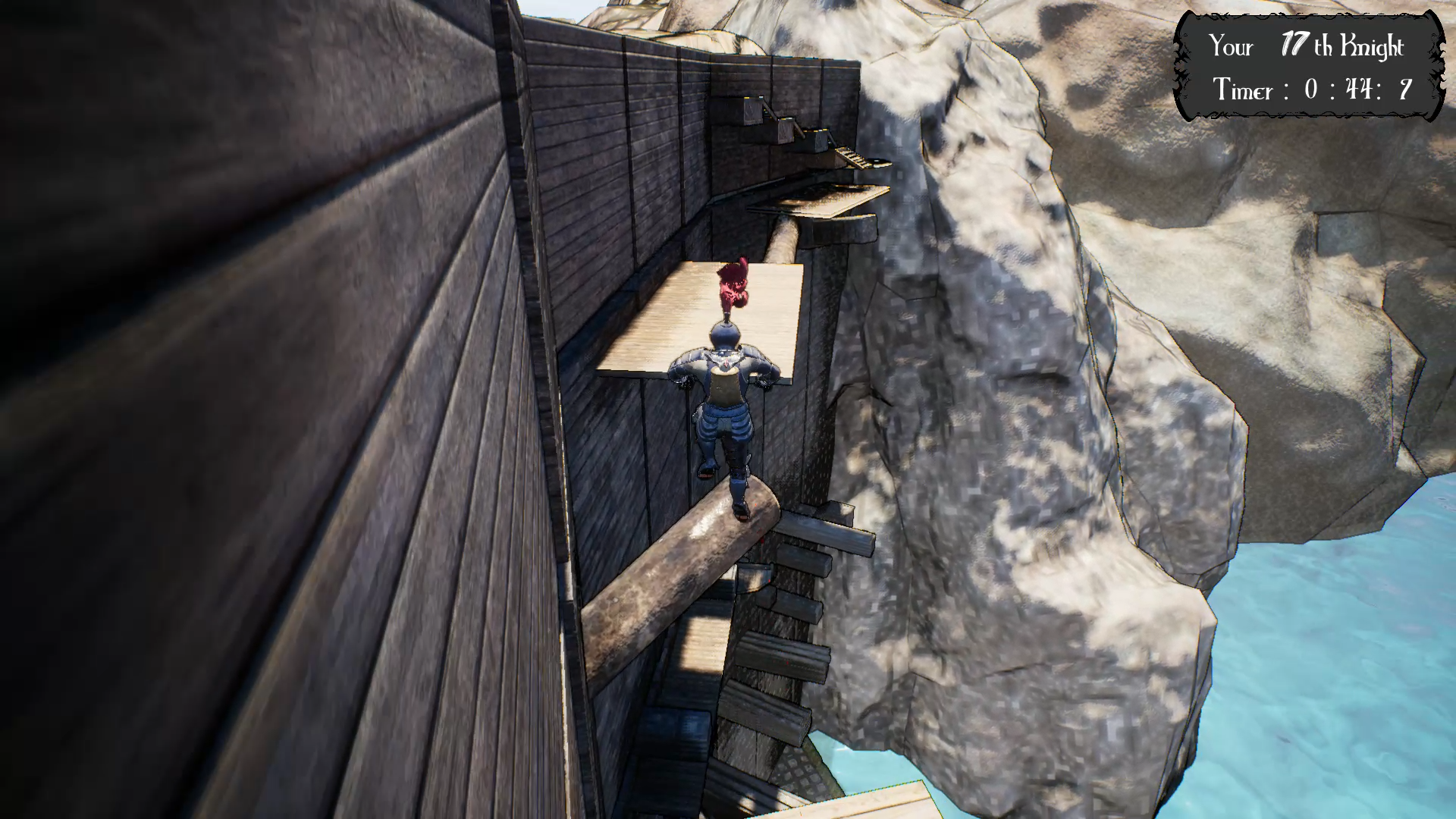 겨우 성벽에 닿았지만 이것 역시 또하나의 고난이었습니다. 그래도 이게 마지막일 것이라 생각해서 도전을 이어나갔습니다. 이번에도 역시 무수히 떨어졌지만 그나마 낙사 데미지를 없애는 기능이 있어서 처음으로 되돌아가는 일은 그다지 많지 않았습니다. 이윽고 성벽을 완전히 오르지는 못했지만 딱 한 걸음만 오르면, 딱 회전하는 칼날 하나만 넘으면 완등하는 순간이었습니다. 혹시 칼날을 넘지 못하고 떨어질 수도 있었기에 점프를 해서 너머를 엿보았지만, 거기엔 그저... 또다른 고난들 뿐이었습니다. 저는 그자리에서 죽음을 택했습니다.