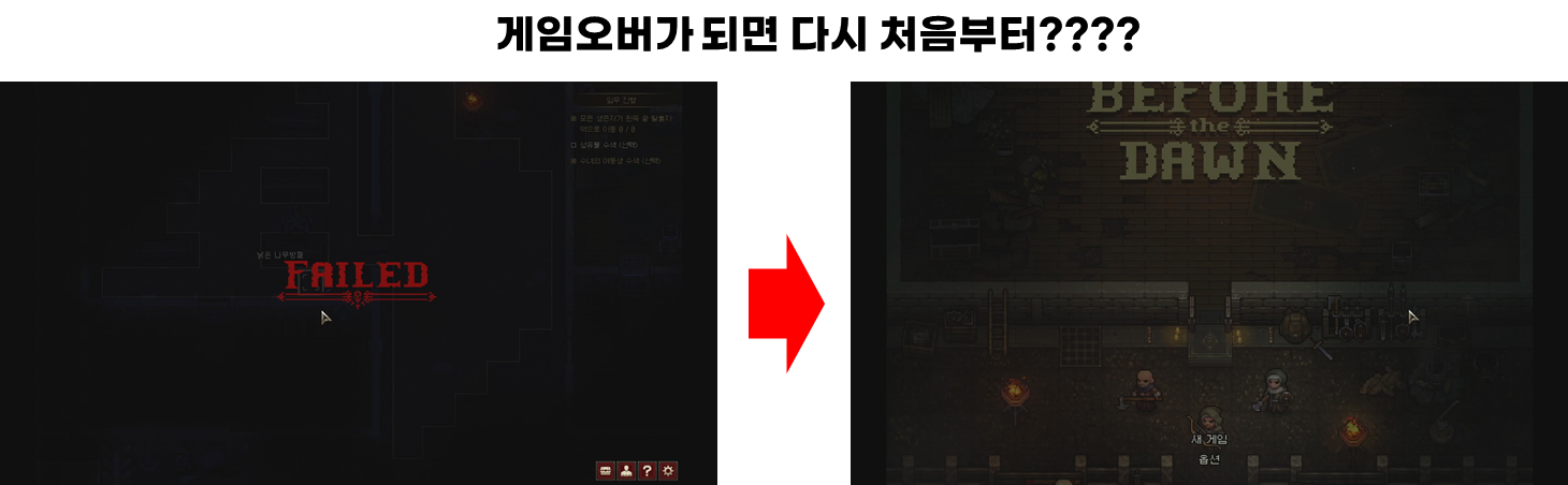 전투때 게임오버가 되면 다시 전투 진입전으로 게임을 재시작 할 수 있어서 유저 입장에서 전투 입장 준비를 더 철저히 할 것 입니다.