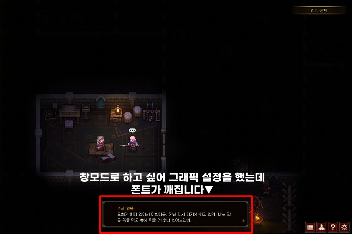 그래픽 설정을 했는데 폰트가 깨지는 현상이 나와서 게임을 여러번 삭제한 끝에 원래 그래픽으로 돌아오게 되었습니다.