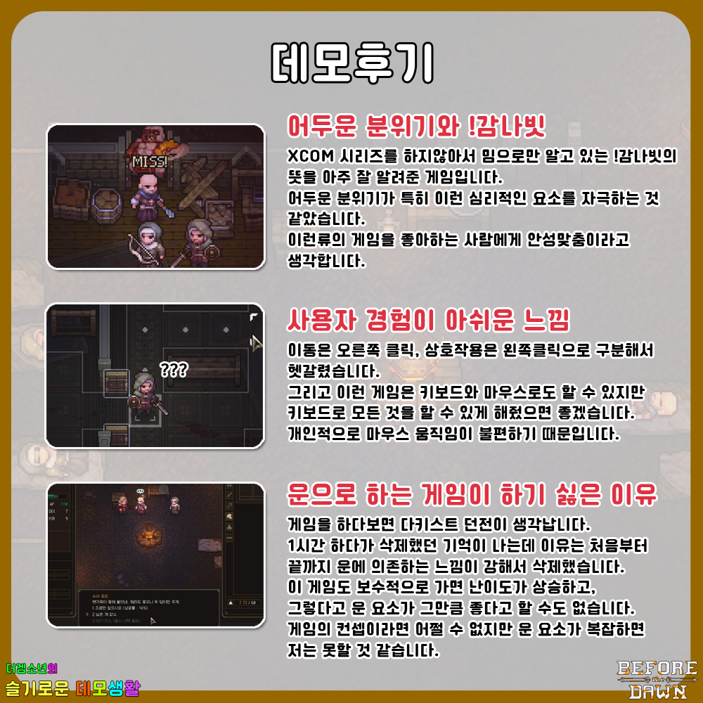 비포더 던은 개인적으로 마우스를 이용해서 플레이하는 것이 불편했습니다.