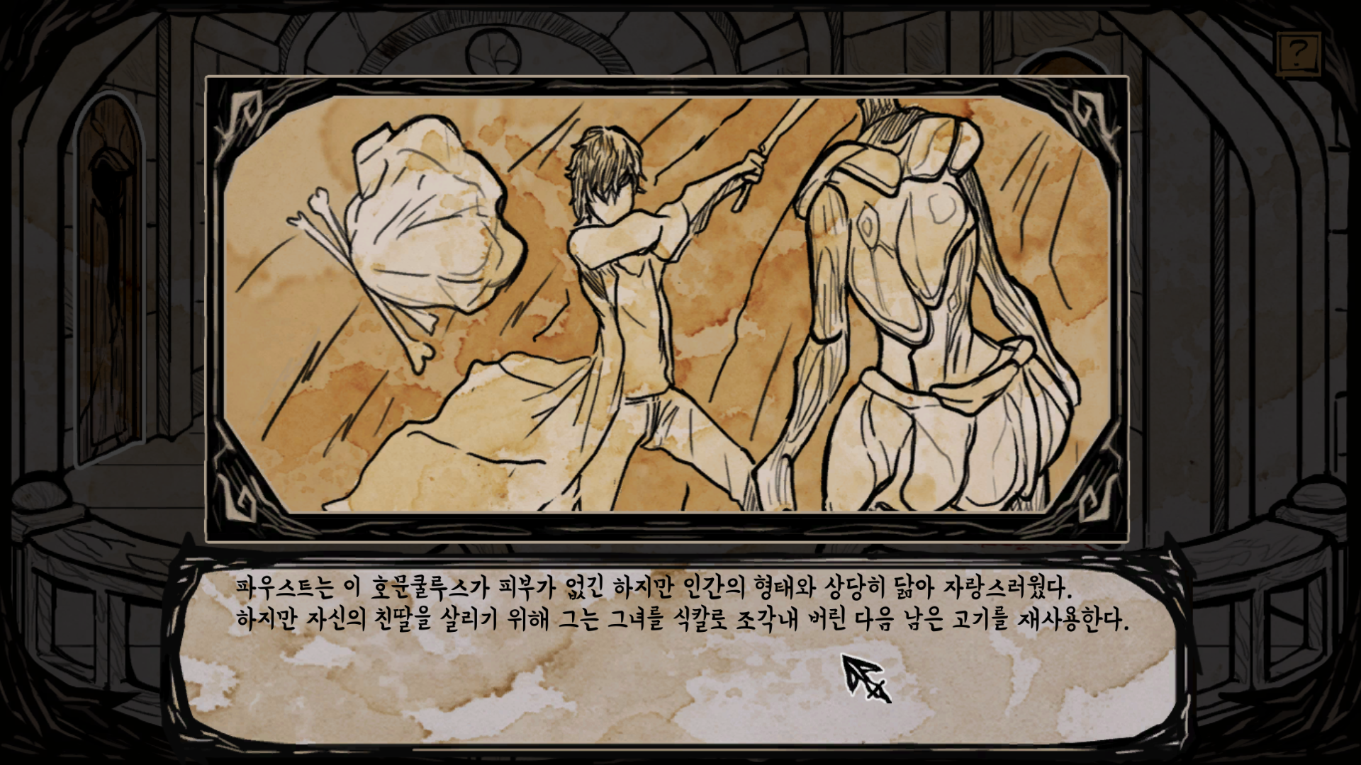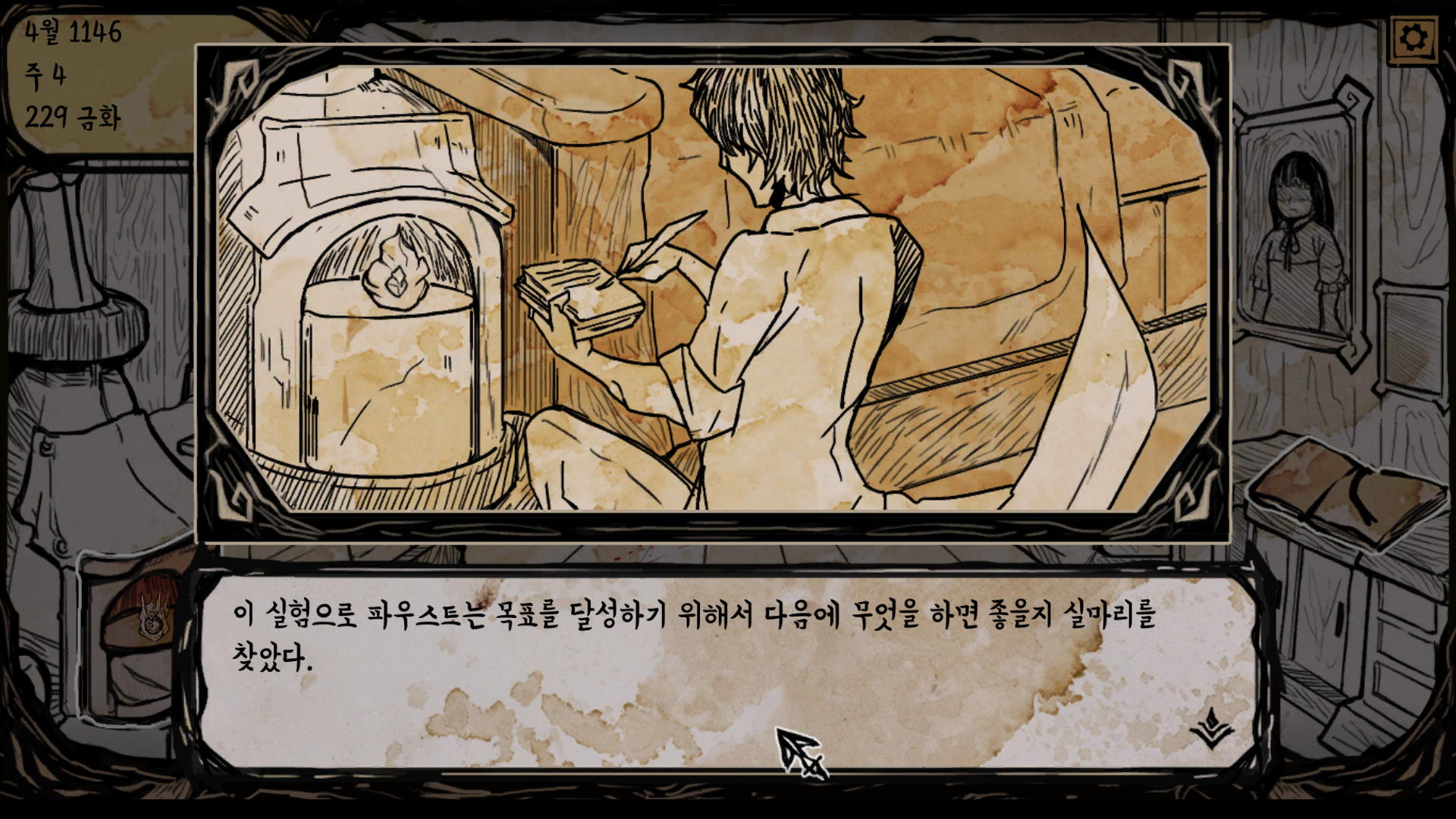 하고자 원한다면 플레이어는 파우스트로서 호문쿨루스를 희생시키지 않으면서 유사 가족 놀이를 이어나갈 수도 있습니다. 하지만 이런 방향은 개발사가 의도한 것은 아닐 겁니다. 호문쿨루스들 종류별로 한 번씩 희생시켜가면서 효율적으로 영혼을 거두고, 딸을 되살리기 위한 실험을 진행하는 게 이 게임이 추구하는 방향성입니다. 대부분의 실험은 실패로 끝이 나지만, 뭔가 조건을 만족하면 아리아가 되살아나는 결말을 보게 됩니다.