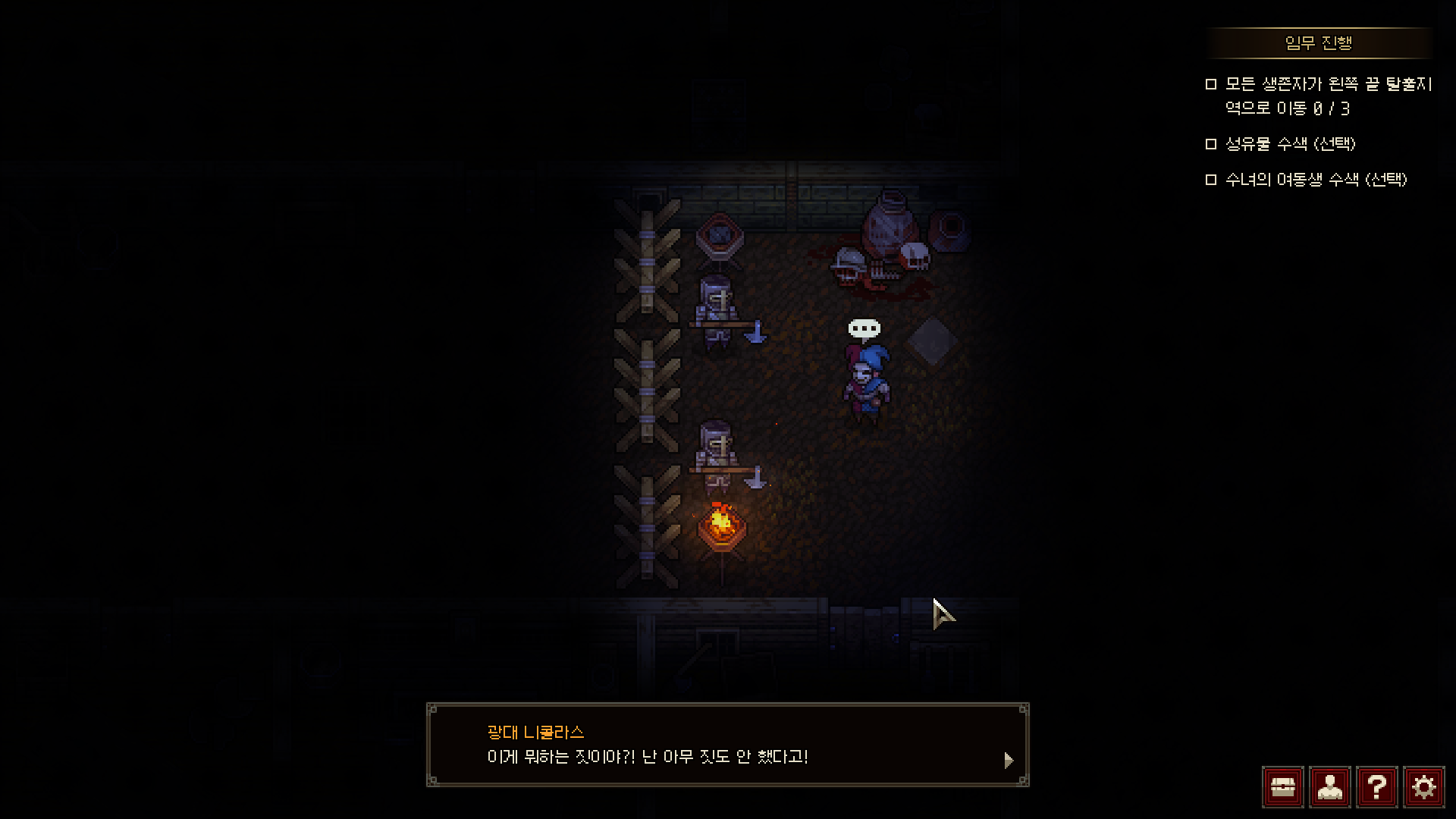 사실은 올해 내가 BIC 행사장에서 해 봤을 때는 사냥꾼이 아닌 수사가 사망해도 게임 오버를 당했던 기억이 나는데 지금 스토브인디에 올라온 버전에서는 계속 진행이 되는 것 같았다. 그래도 어차피 이런 스타일의 게임은 전력 하나가 있고 없고에 따라 난이도가 확 변해서 한 명이 사망하는 순간 게임을 끄지 않을 수 없었다.