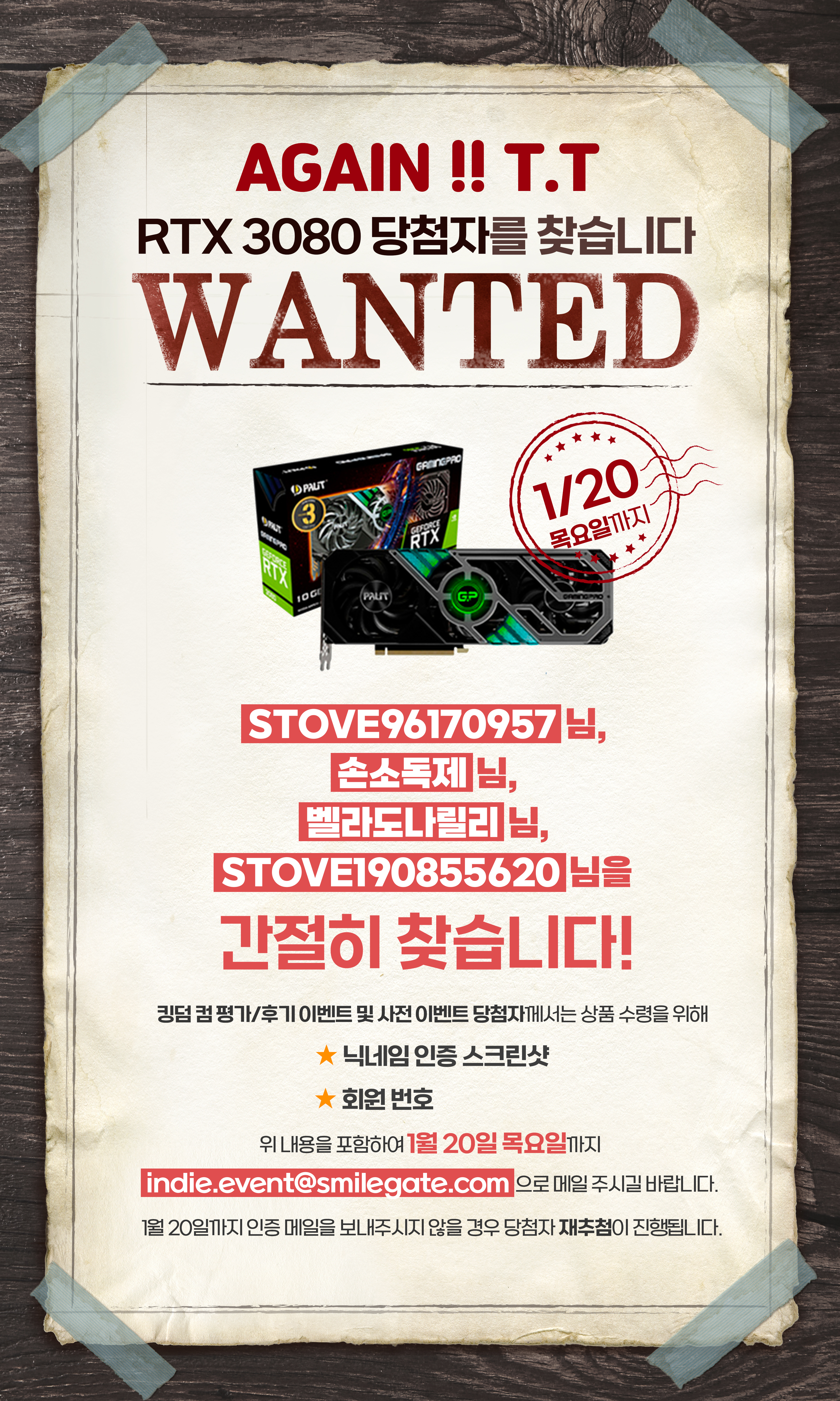 RTX 3080 이벤트 경품은 재추첨이 진행될 예정입니다.