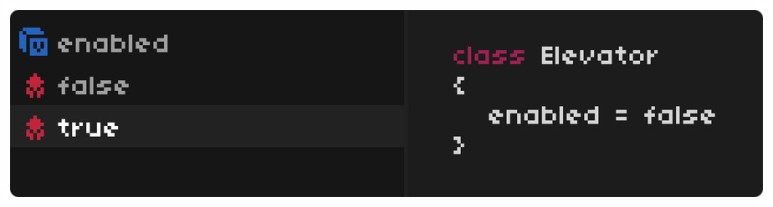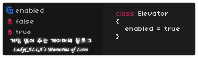 예를 들어서 닫혀진 엘리베이터 문을 열기 위해서는 false 로 되어 있는 값을 true로 변경하면 되는 식이다.