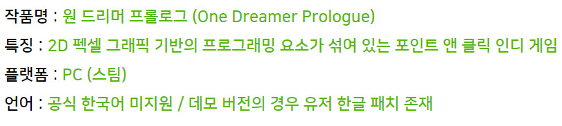 '원 드리머'는 유저 한글화 패치가 존재하는 작품들을 살펴 보던 중 우연하게 발견하게된 작품이다.