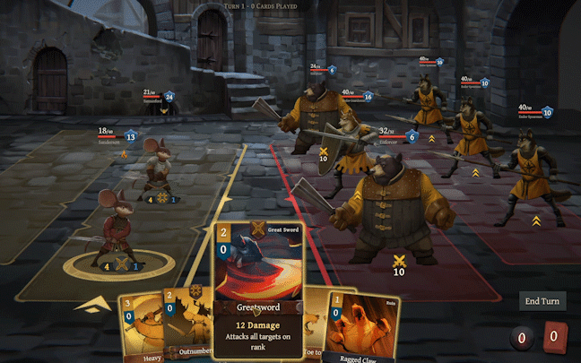일행을 모으세요. 사명에 응답하세요. 전쟁에서 승리하세요. 덱을 만들어 최대 6명의 파티 멤버들과 함께 도시를 통과하며 턴제 전투를 진행하세요.