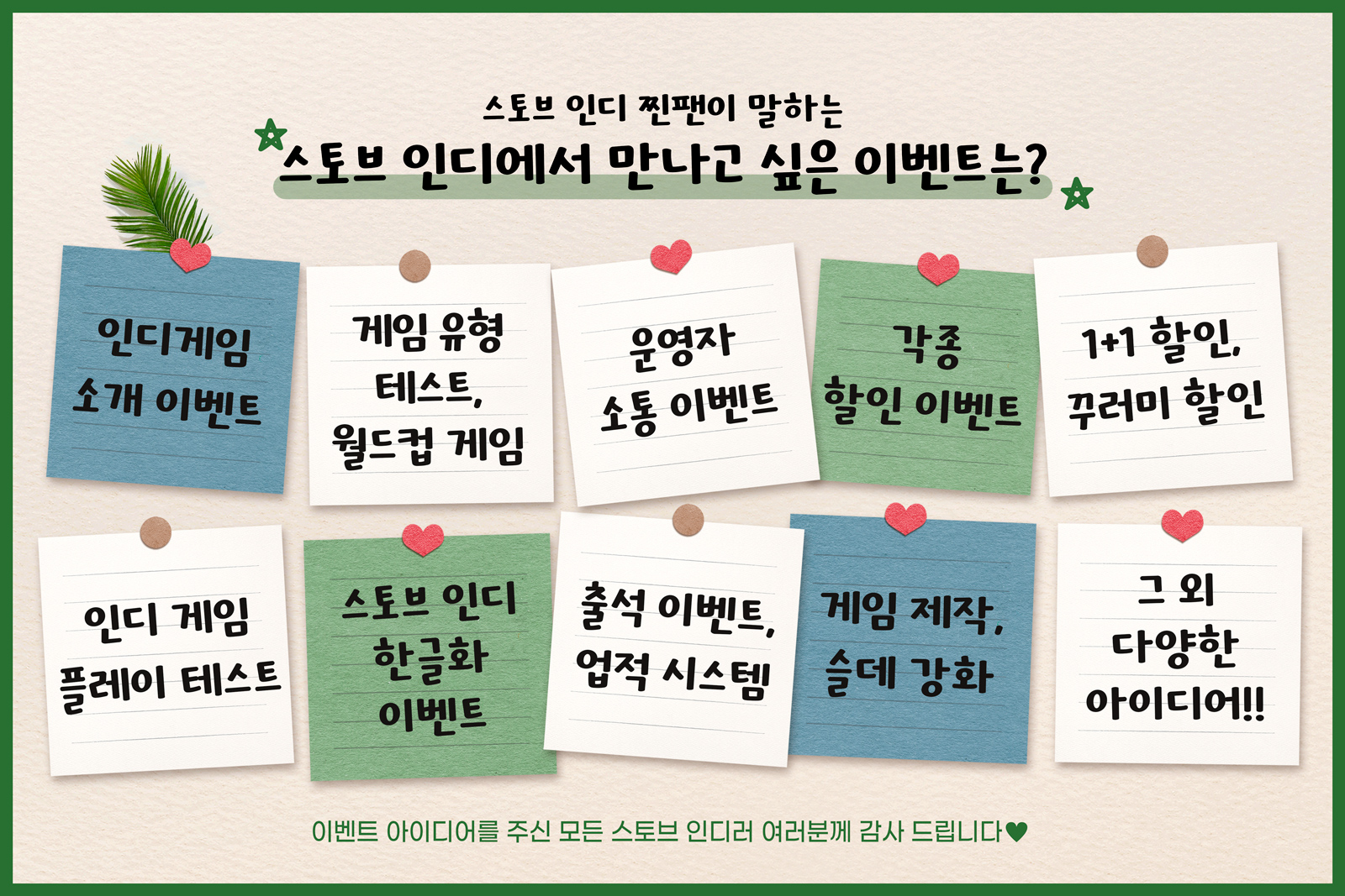 스토브 인디 운영자와 소통하는 이벤트도 많은 분이 제안 주셨습니다!