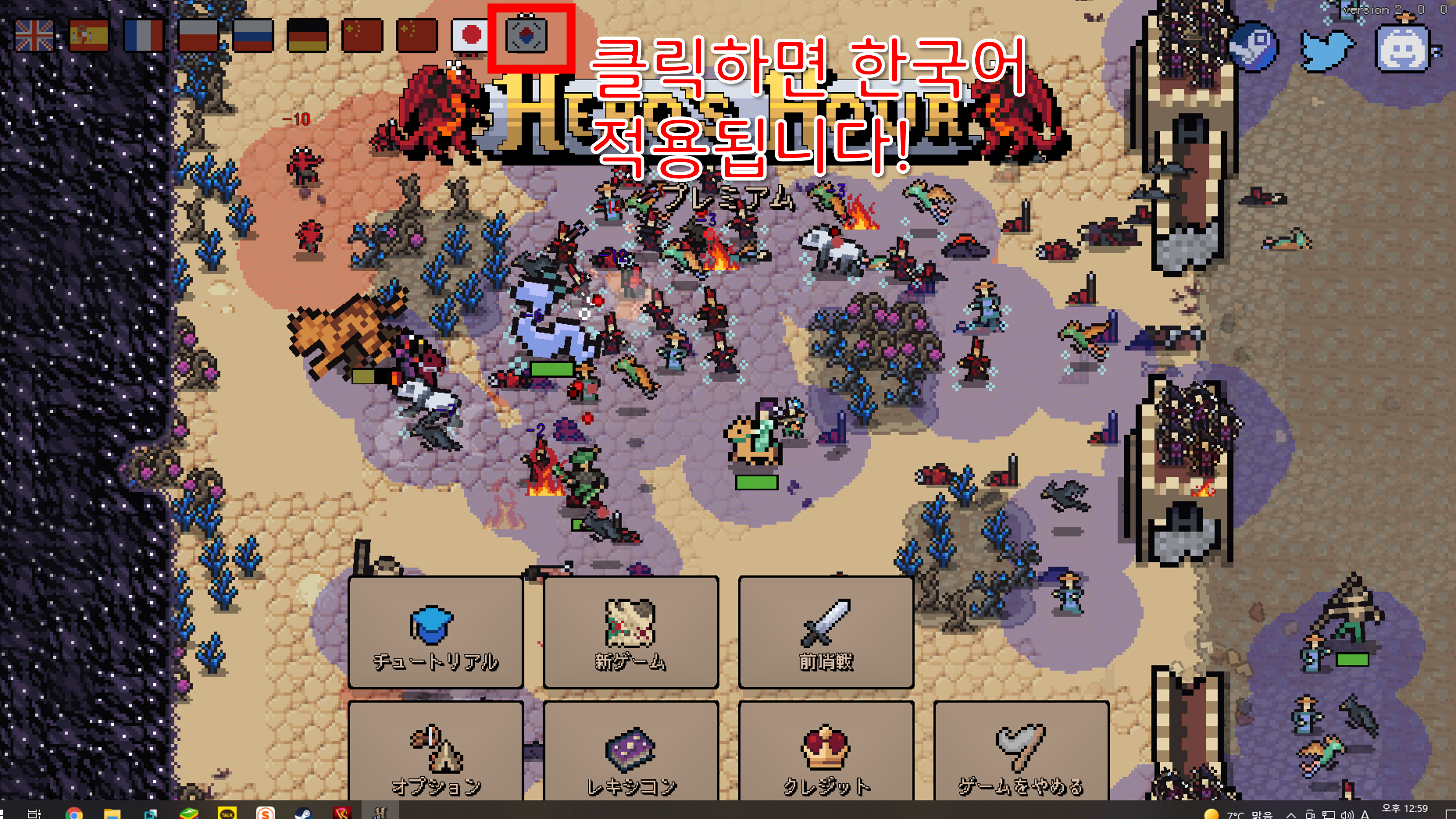 현재 히어로즈아워 실행 후 메인 화면에서 '튜토리얼' 버튼을 클릭할 경우