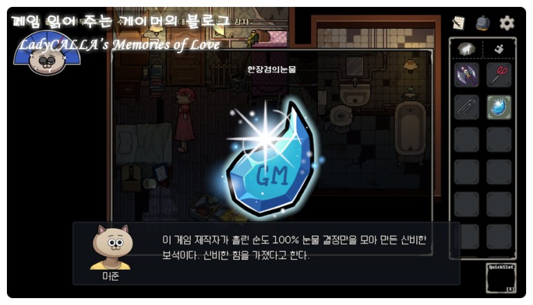 오히려 메인 스토리는 쉽게 쉽게 진행했는데 히든 아이템들 찾아서 엔딩 수집을 하는 부분에 있어서, 올바른 해답을 찾기 위해서 상당한 시간을 들여서 고민하며 플레이를 진행해야만 했다.
