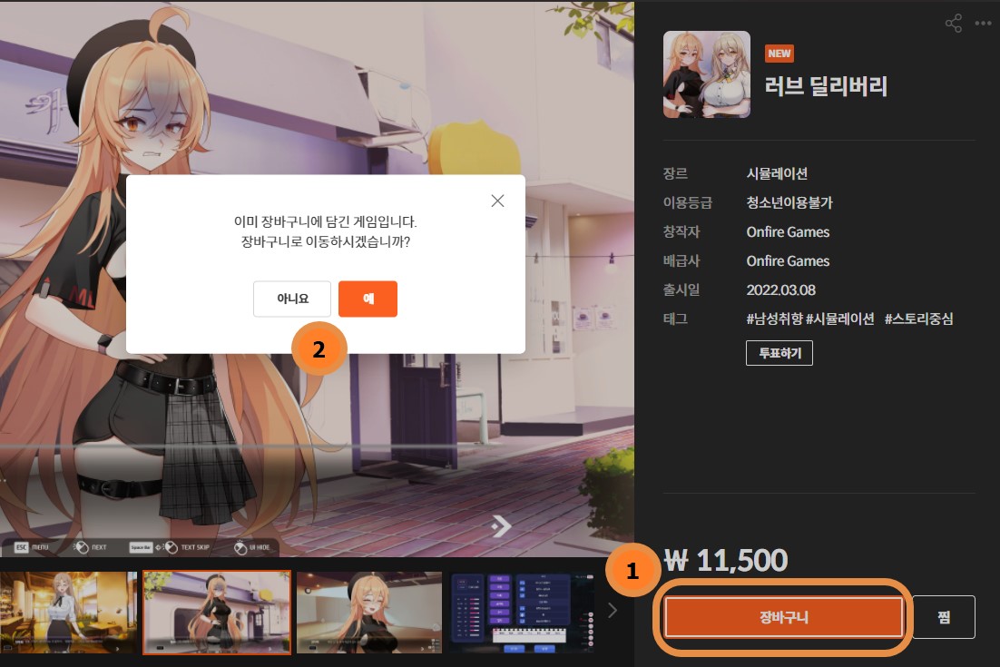 1. 장바구니에 원하는 게임 담기