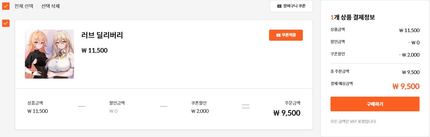 러브 딜리버리가 11,500원에서 9,500원으로~~!