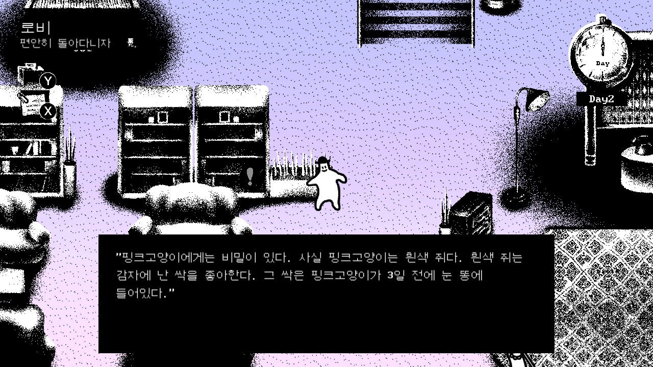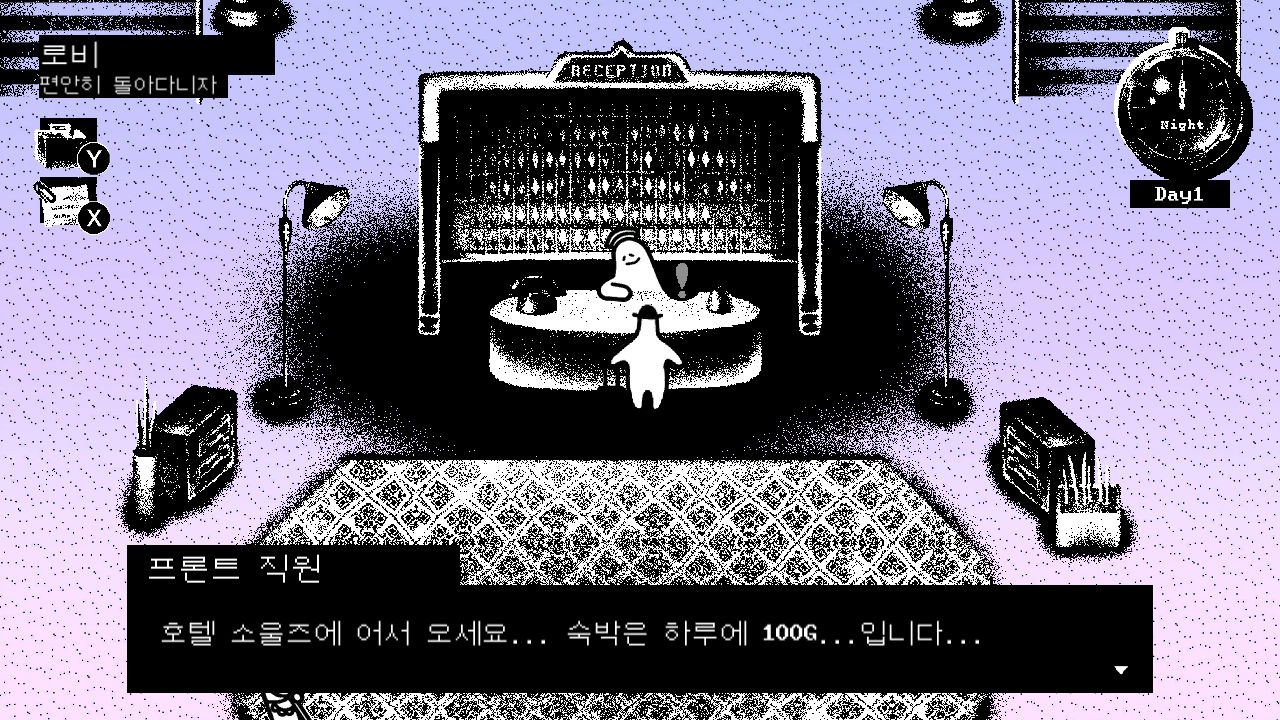 게임은 5일이라는 정해진 시간 동안 사건을 해결해야 하지만, 시간이 실시간으로 흘러가는 것은 아니니 주어진 이벤트들과 오브젝트들을 모두 확인해보며 천천히 플레이해도 좋다. 오히려 이 방법이 훨씬 호텔 소울즈를 즐기는 방법이라고 생각한다.