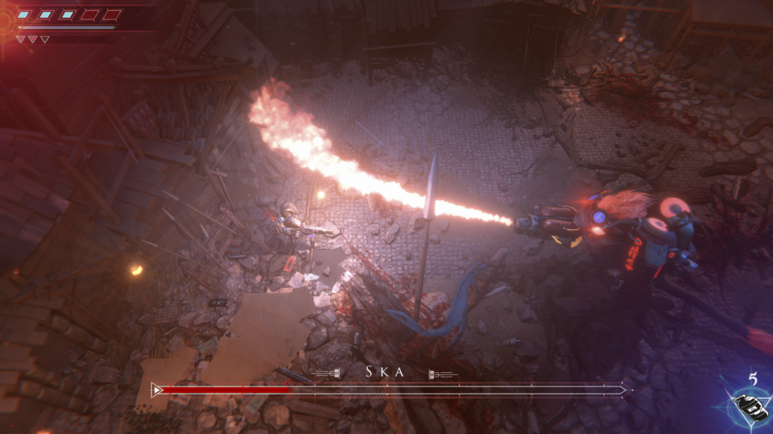 맵을 돌아다니며 구경하는 것 외에도 플레이어는 민달팽이 집단을 폭력적이고 사나운 괴물로 만든 역병을 되돌리기 위해 각 레벨을 뚫고 나가는 데 많은 시간을 할애하게 될 것이다. 클리드의 무기는 화염방사기, 조명총, 산탄총과 같은 무기들로 다양하지만, 문제는 산탄총과 다른 무기들을 제외하면 많은 무기들이 그다지 강력하다고 느껴지지 않는다는 것이다. 메인 블라스터가 거의 모든 작업에 가장 효율적인 도구처럼 느껴지기 때문에, 플레이하다 보면 메인 블라스터의 충전 샷 외에는 거의 사용하지 않게 된다.