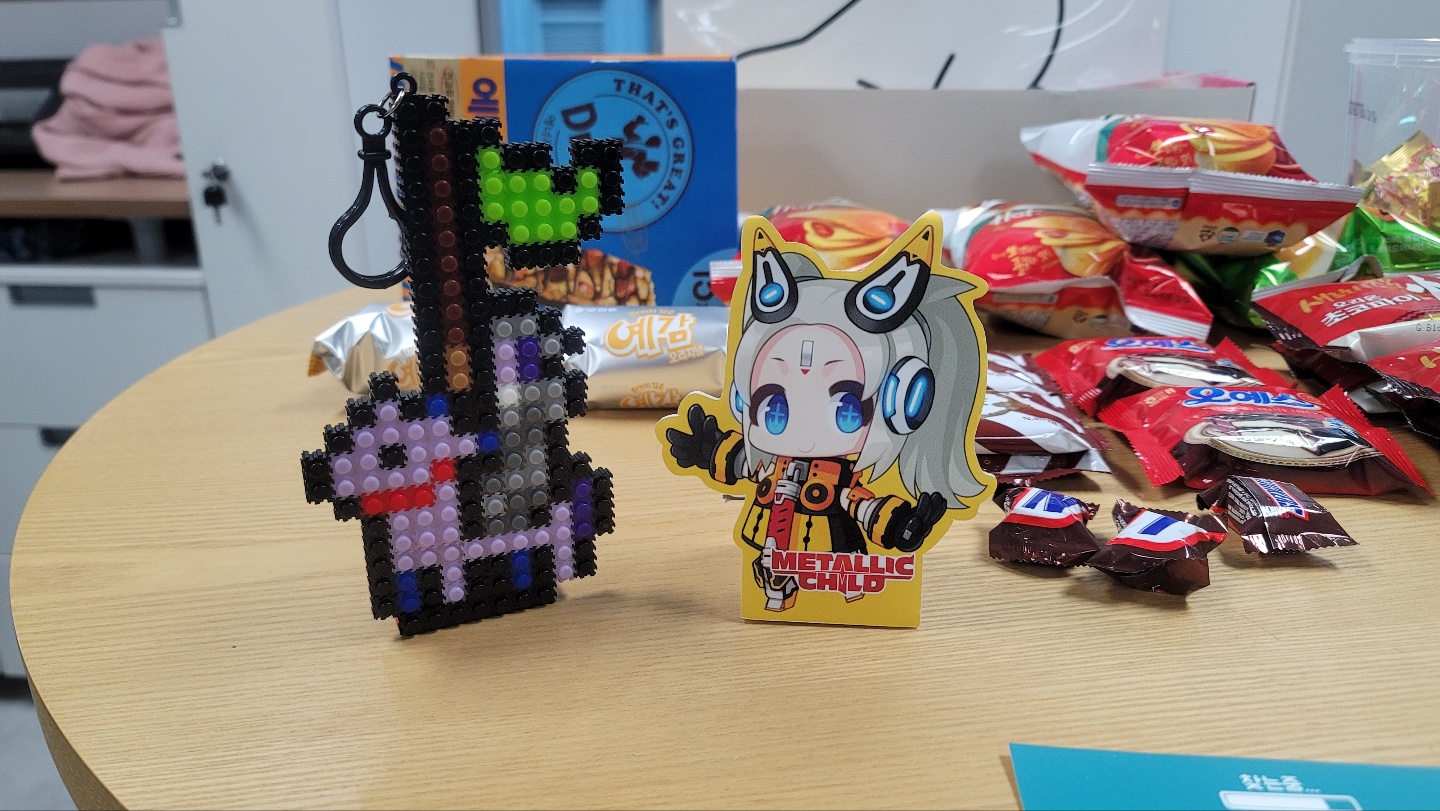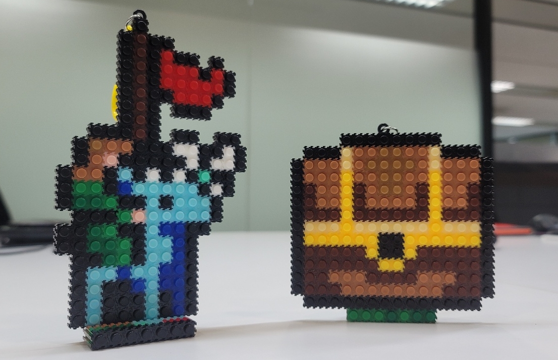 화면 속 도트 이미지들이 막 튀어나온 느낌이네요!