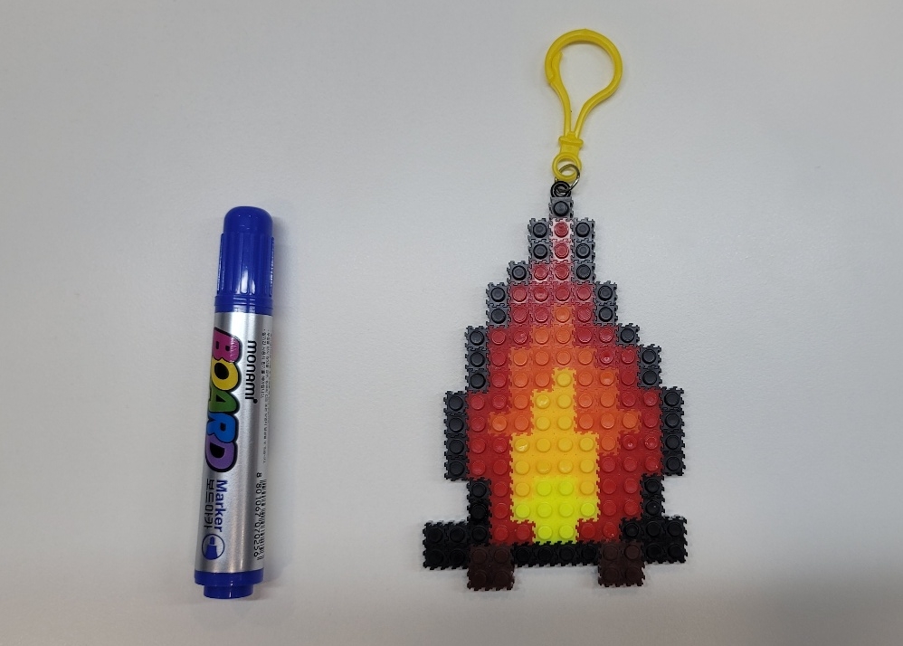이렇게 남는 블럭을 활용한다면 받침대를 만들어 세울 수도 있답니다!