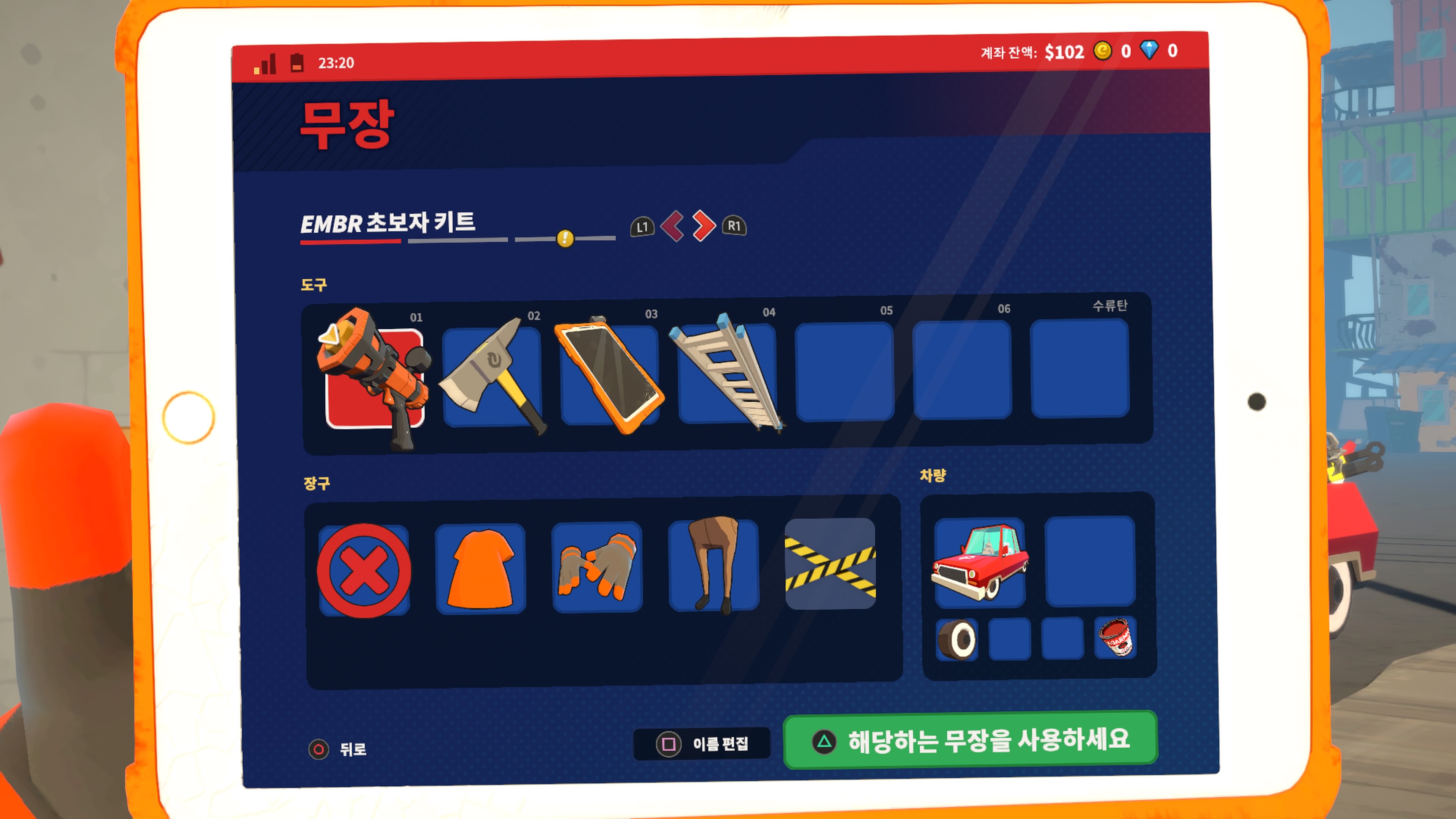 튜토리얼을 끝내면 화재 현장으로 가기 전 필요한 아이템을 살 수 있는 상점으로 가게 된다. 이곳에서 화재 진화에 도움이 되는 다양한 도구를 살 수 있지만, 가지고 갈 수 있는 아이템의 수가 제한되어 있기 때문에 어떤 것을 가지고 가야 할지 잘 선택해야만 한다.