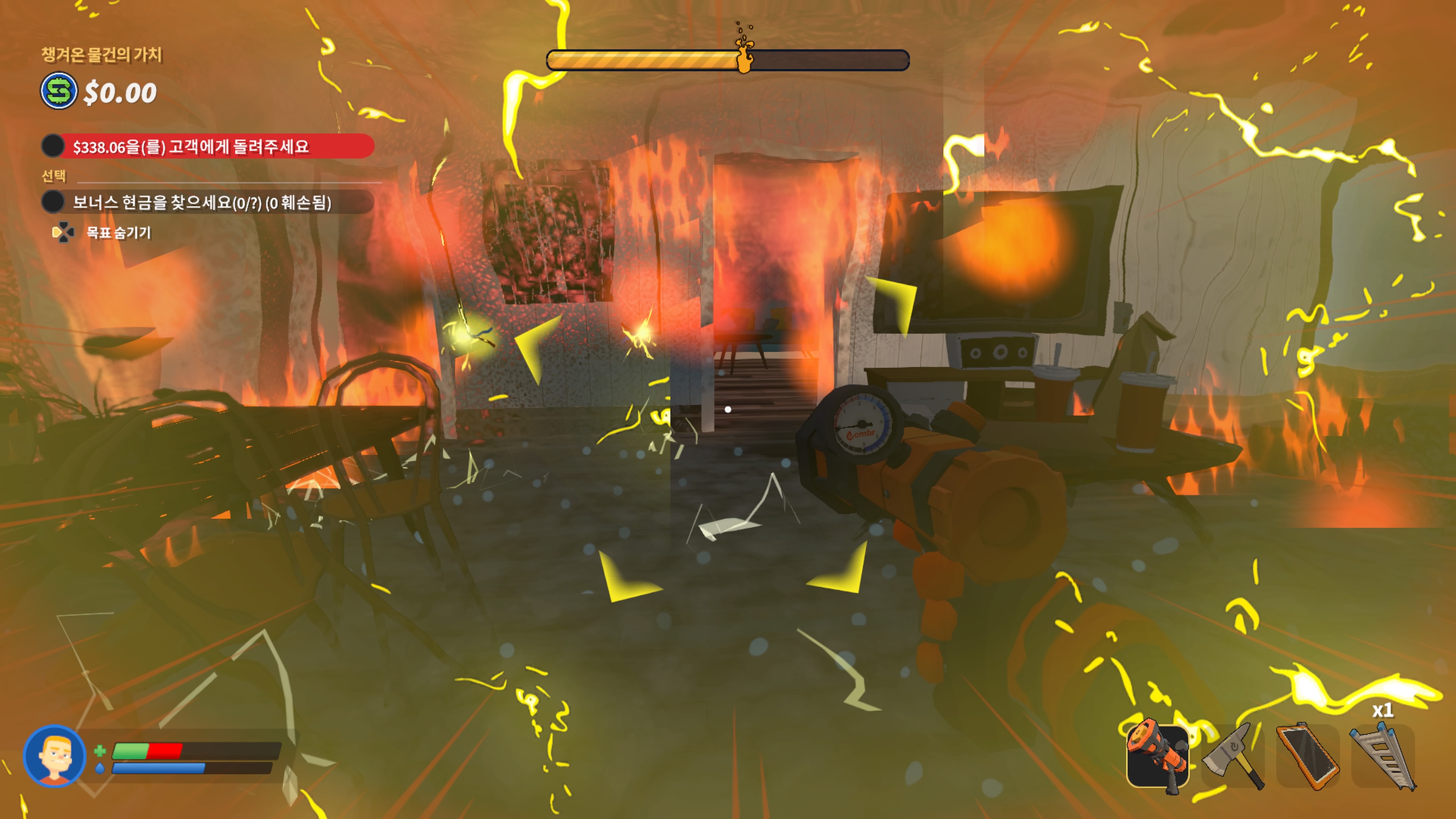 하지만 장비 구매나 업그레이드도 어디까지나 돈이 있어야 가능한 일. 이 게임에서는 돈을 벌기 위해서는 고객을 빠른 시간 안에 구출하는 것 외에도 건물 안에 있는 가구들을 꺼내오는 방법도 있다. 하지만 가장 확실한 방법은 건물 어딘가에 숨겨져 있는 보너스 현금을 찾아내는 것. 물론 빨리 찾아내지 못하면 불에 의해 잿더미가 되어 버릴 수 있는 것에 주의해야 한다.