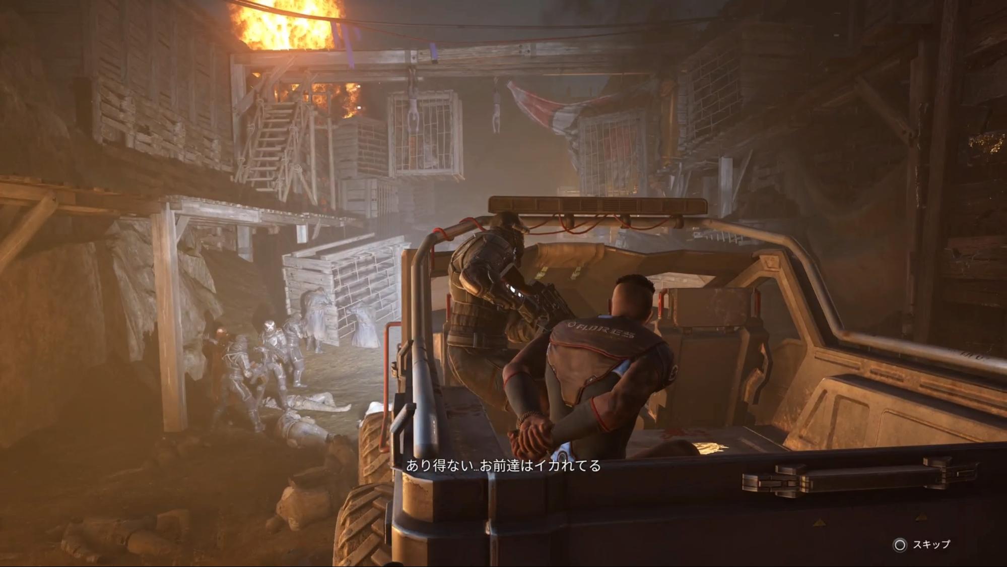 이미지는 초반부의 한 장면. 매달려 있는 사체, 잡혀 있는 사람들, 살인을 즐기는 정신 나간 녀석들, 실로 알기 쉬운 세계관이다.