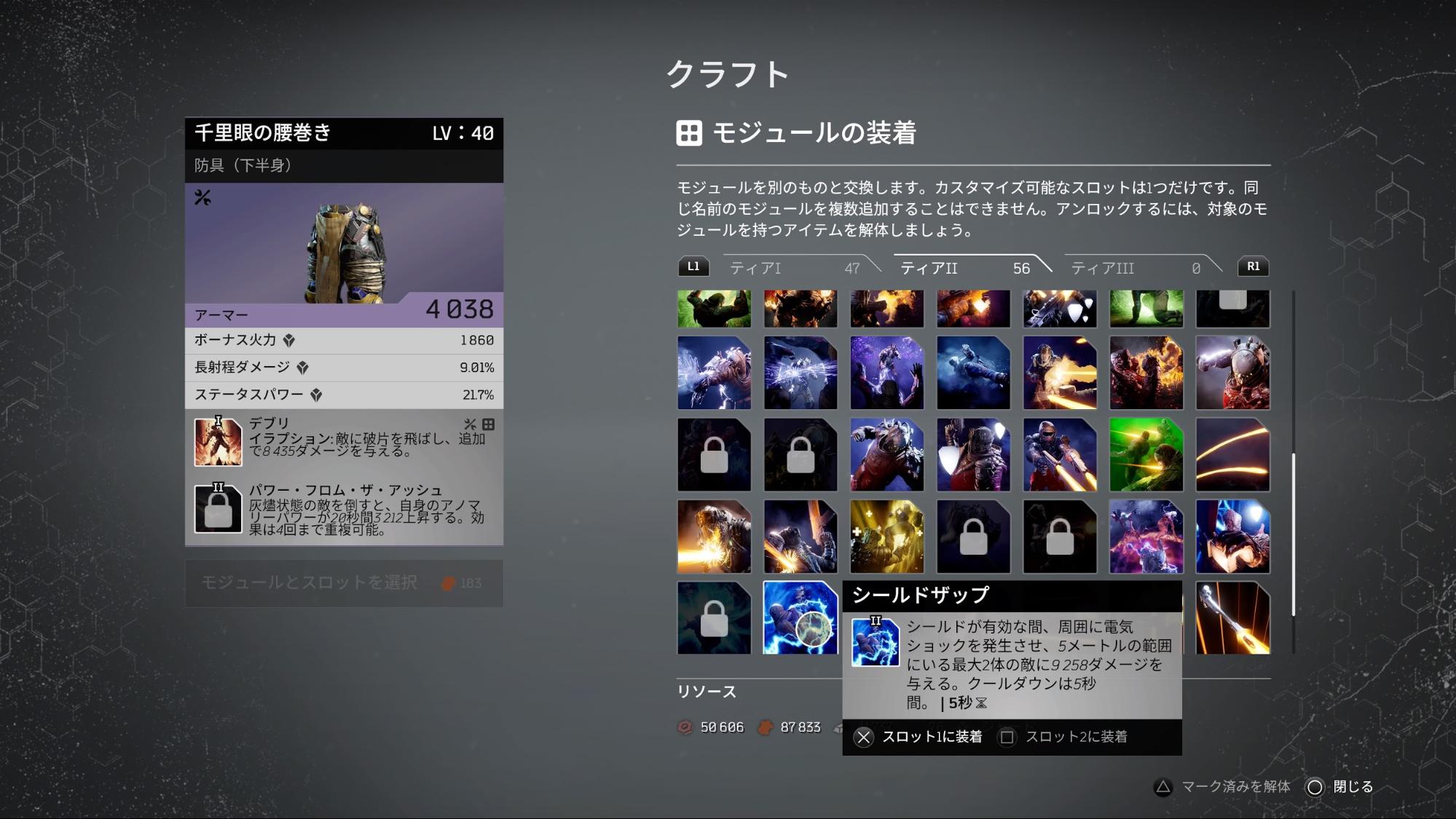 그리고 루터 슈터로서 특필해야 할 점이 장비품 강화의 자유도가 높다는 점이다. 미션을 수행하거나, 장비품을 ‘분해’하면 얻을 수 있는 물자를 소비하면 장비품의 레벨, 각종 패러미터, 레어리티까지 다양한 항목을 강화할 수 있도록 되어 있다. 특히 중요한 것이 장비품을 분해하면 ‘모듈’을 얻을 수 있다는 점. 한 번 얻은 모듈은 횟수 제한 없이 어떤 장비품에든 자유로이 사용할 수 있게 된다.