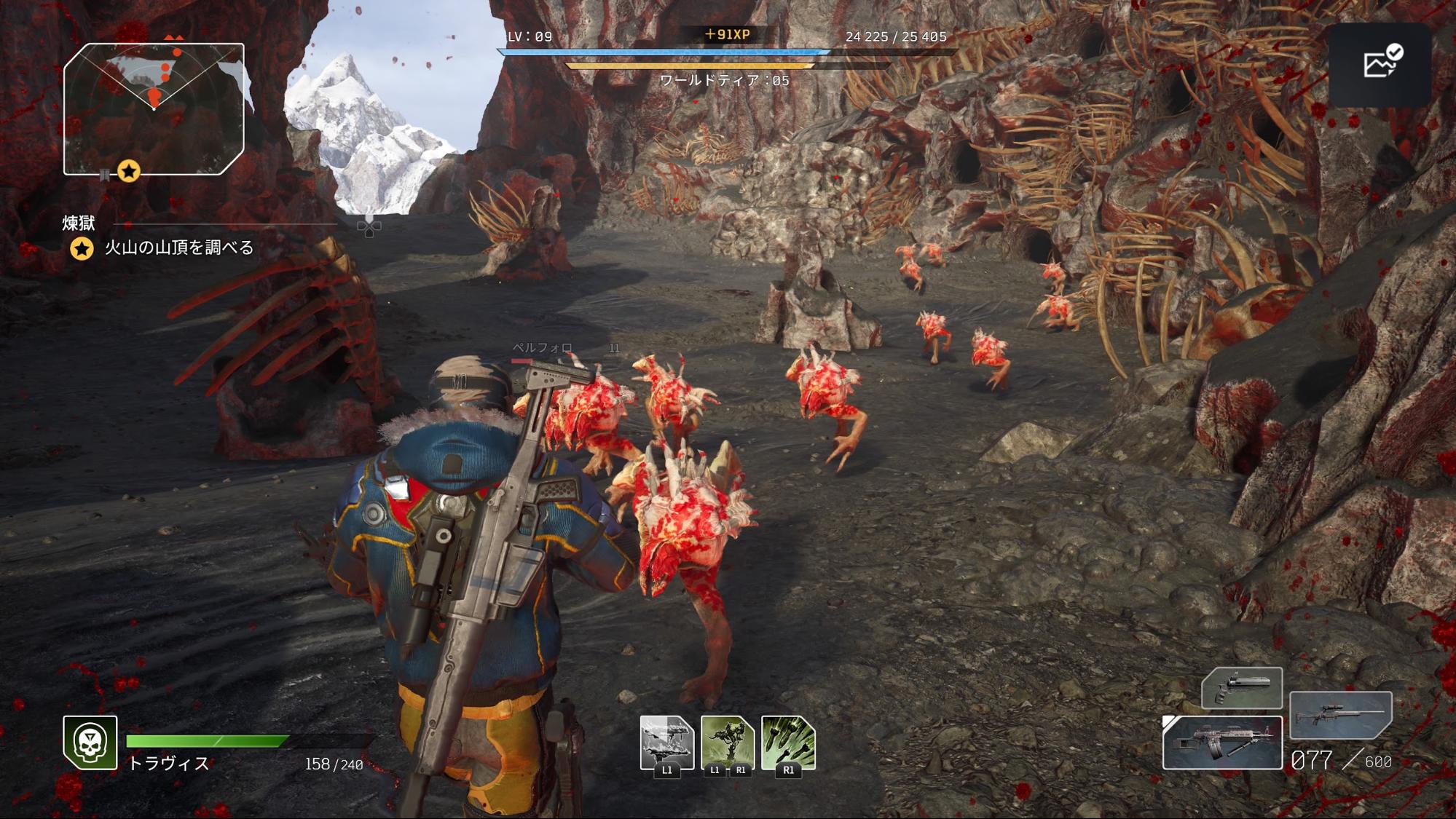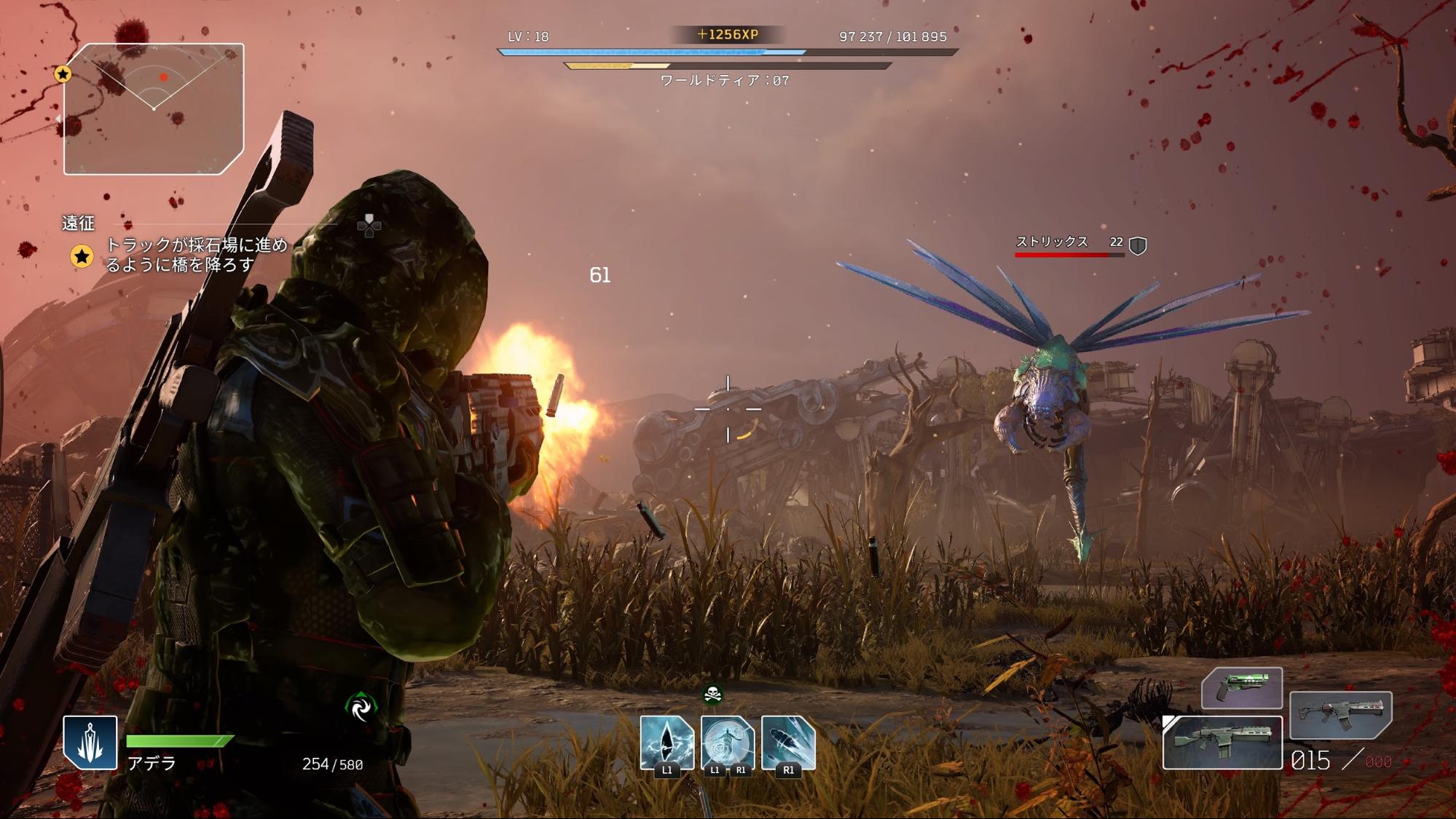 이상은 총을 든 인간형 적에 대한 이야기지만, 이 게임에는 흉악한 몬스터들도 상대해야 한다. 그리고 이쪽은 처음부터 커버 액션은 전혀 고려하지 않은 모양이라, 맹렬한 기세로 추격해 오는 몬스터를 향해 마구 난사하게 된다. 이렇게 되면 그저 적만 거대한 곤충에서 몬스터 패닉 영화에 나올 것 같은 그로테스크한 괴물로 바뀐, 더더욱 ‘지구방위군’ 시리즈와 비슷한 플레이 감각이 된다.