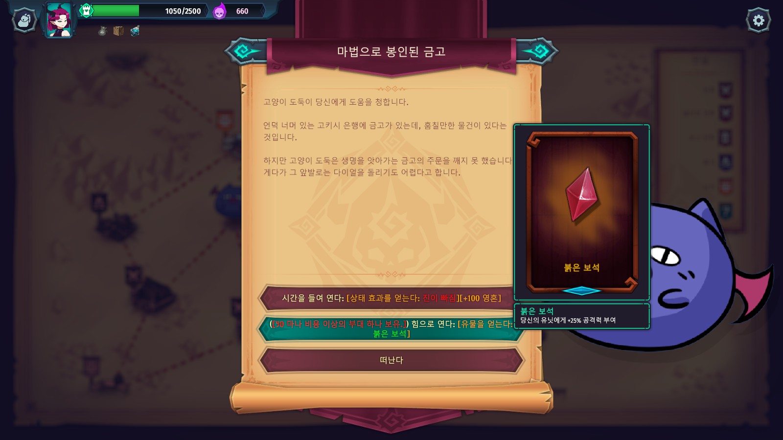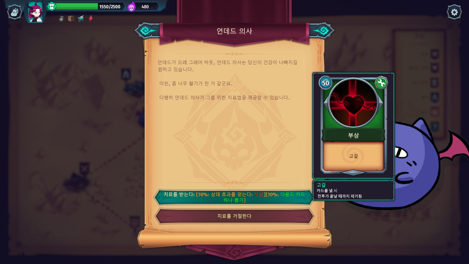 카드나 유물을 얻을 수 있는 방법 중 하나인 이벤트. 이득보다는 덱에 쓸모없는 카드가 들어온다거나 유닛이 약해지는 등 손해가 더 커서 웬만하면 거르게 된다. 좀 더 매력적인 제안을 해줬으면 하는 부분.