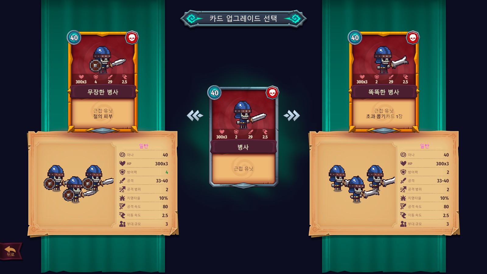좋은 유물이나 카드가 잘 안 모인다면 그냥 항복하고 다시 시작해도 된다. 패배하거나 항복할 때마다 지휘관이 성장하며, 성장 정도에 따라 덱에 넣을 수 있는 카드나 시작 덱의 종류가 늘어나는, 일종의 로그라이크 요소도 갖추고 있으니 말이다. 죽여도 죽여도 되살아나는 언데드처럼, 플레이어 역시 죽음을 반복하며 더 강해지는 것이다.