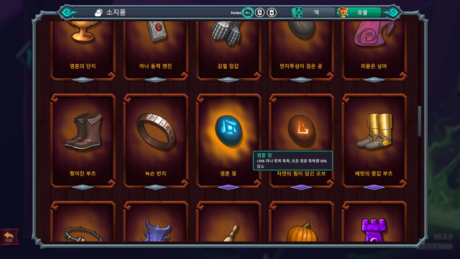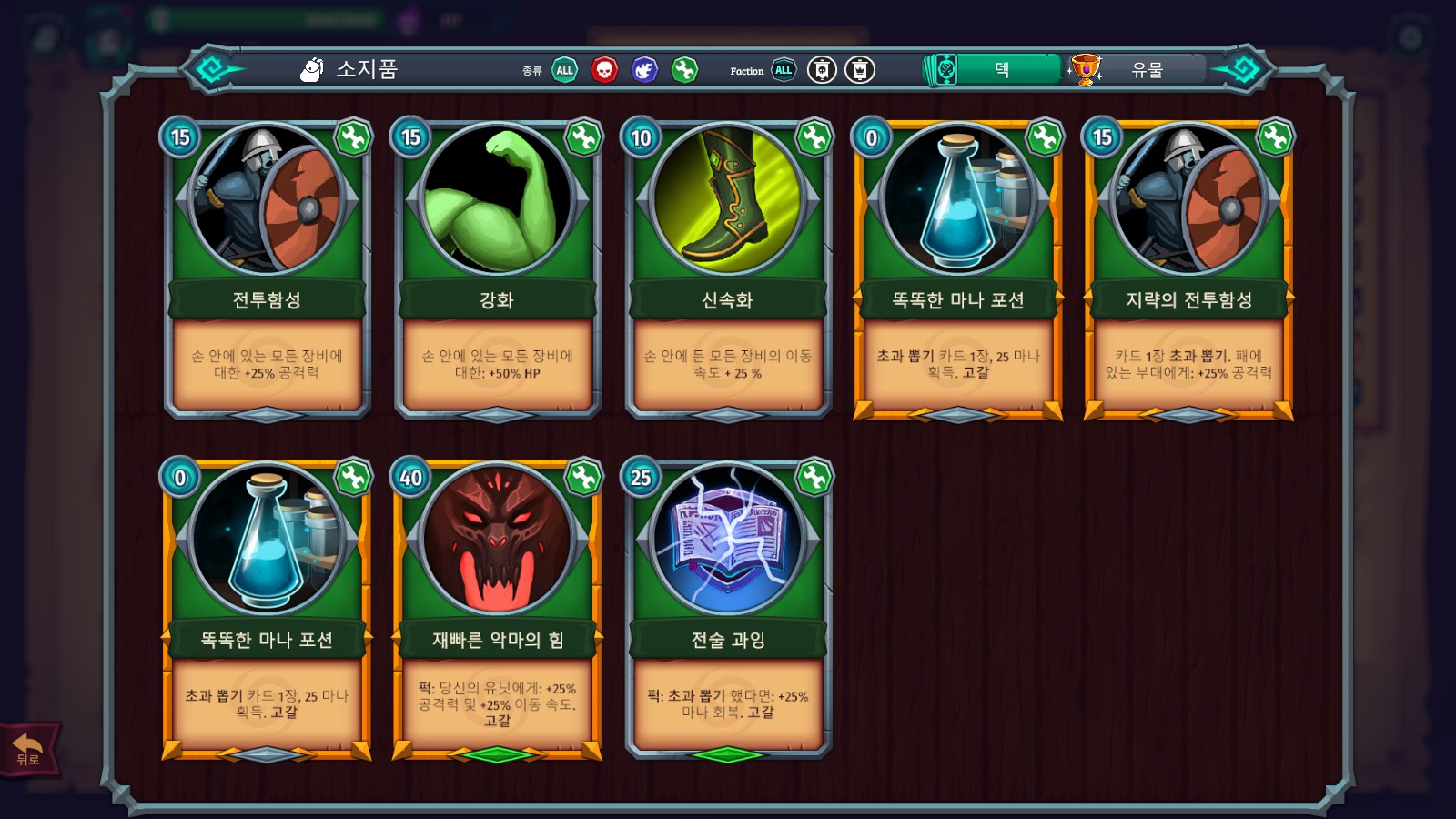 다양한 효과를 가진 유물. 물론 적도 장착한다. 뒤로 갈수록 카드 사용을 막거나 능력치를 올리는 등 까다로운 유물을 장착한 적들이 등장해 어려워진다.