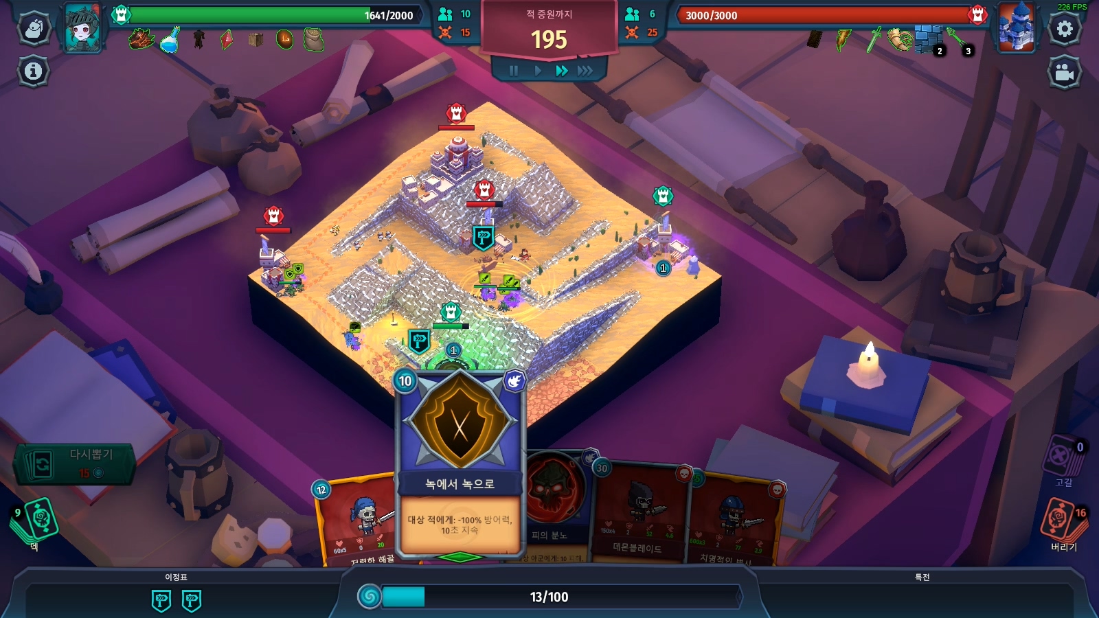 그렇다고 해도 덱 빌딩 시스템을 도입한 다른 게임에 비해 정말 간단하다. 게임 속도를 자유자재로 전환할 수 있고, 위치를 지정해 발동시키는 주문 카드를 사용할 때도 시간이 느리게 가서 급하게 머리를 굴리지 않아도 된다. 패시브 효과를 추가하는 '유물'은 진입장벽을 더욱 낮춘다. 운이 좋아서 초반에 전투에 도움을 주는 강력한 유물을 얻는다면 그 후의 게임 플레이도 술술 풀린다.