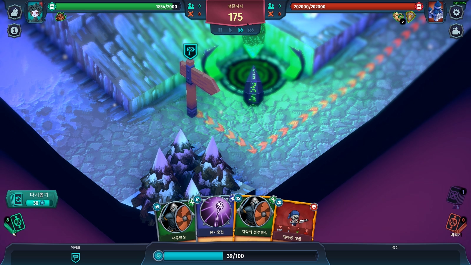 먼저, 건물을 지을 필요가 없다. 자원은 알아서 쌓이며, 적의 위치나 움직임은 처음부터 다 보여 정찰도 필요 없다. 플레이어는 그저 보유한 재화에 따라 부대 카드로 유닛을 적시에 소환하기만 하면 된다.