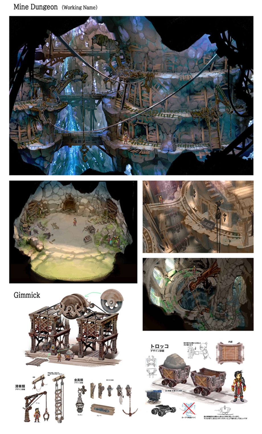 이번에는, 광산 던전 지역의 대략적인 스케치를 보여드리고자 합니다. 꽤나 흥분되지 않나요? 마치 지하에 있는 비밀 통로 같기도 하고요.