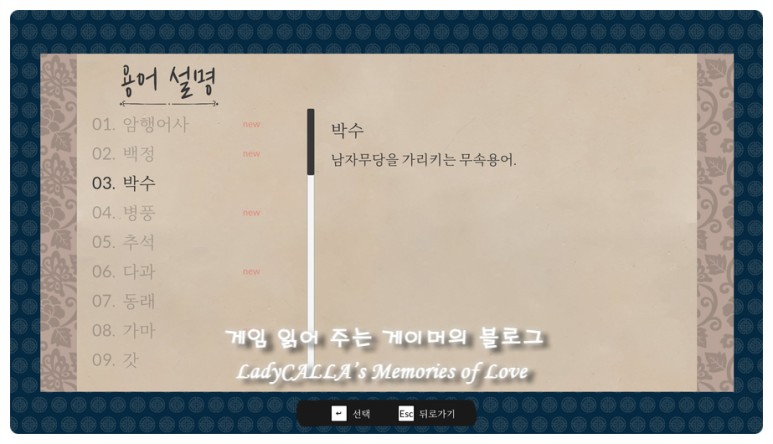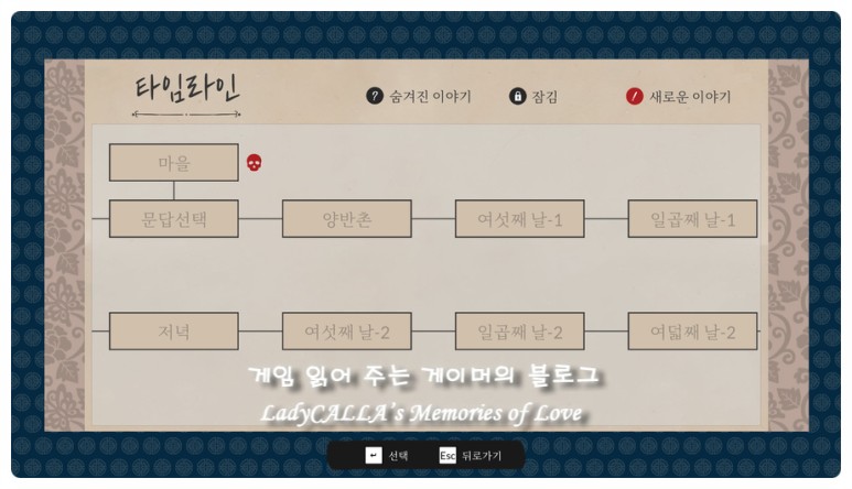 그리고 작품 초반부에는 '조선'의 시대적 특징에 대한 TMI 부분들이 꽤 있어서, 이토록 열렬히 '조선'의 특징을 외국인들에게 알려 주고 싶어 한 개발자의 진심도 잘 느껴졌지만,