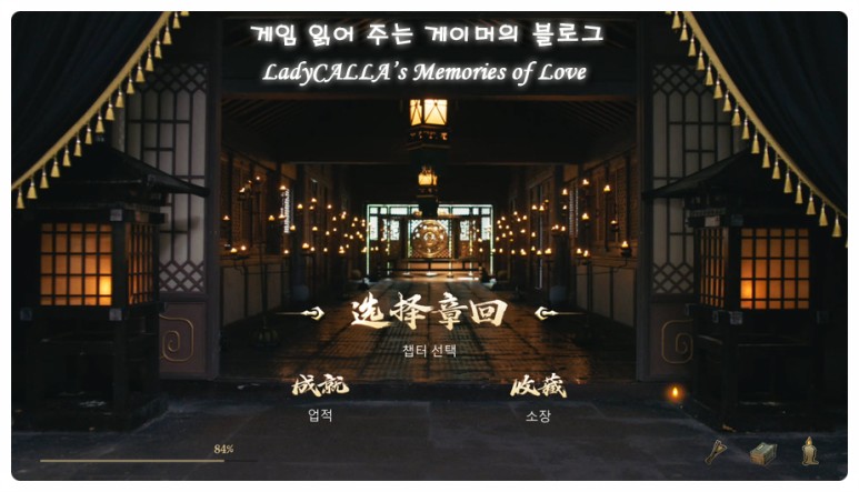 현재 17화까지의 진행을 마치고 엔딩을 본 상황에서 84% 진행률을 달성하고 있는데 (2회차 플레이를 진행하지 않아서, 선택해 보지 않은 선택지의 경로들이 다수 존재함.),