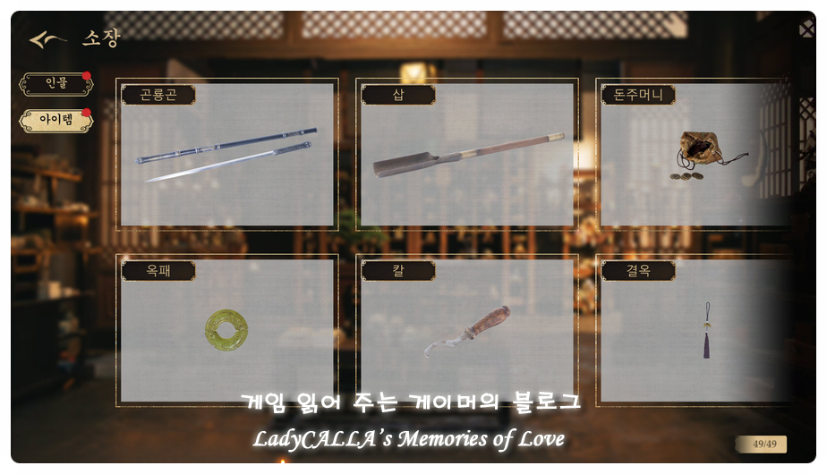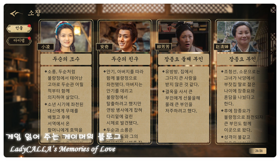 엔딩을 보고 난 이후에도 '인물'과 '아이템' 메뉴를 살펴보는 재미가 있으며,