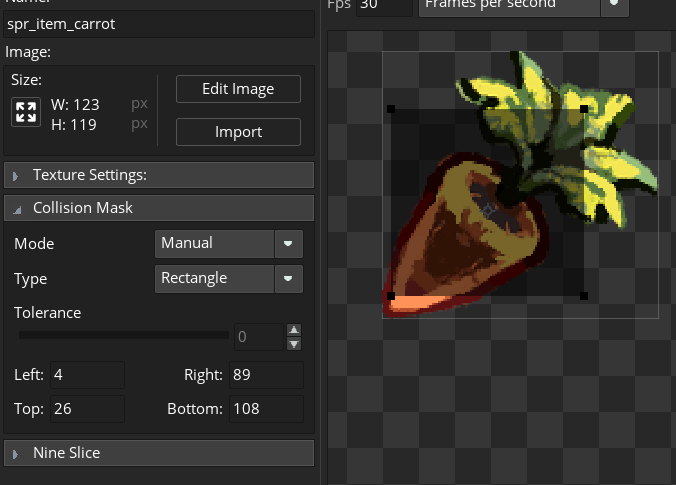 해당 버그를 해결하기 위해서 고기와 당근의 콜리전 크기가 3배 증가했습니다.