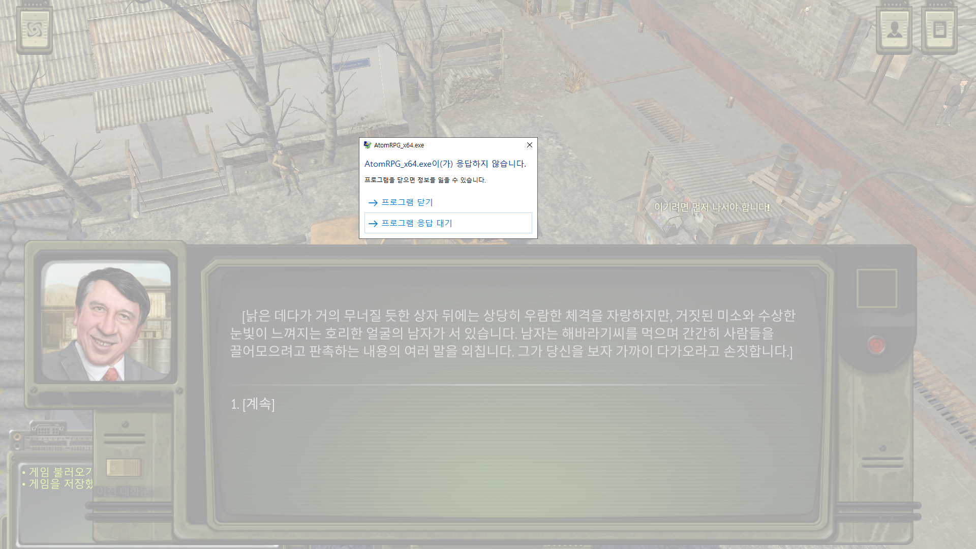 저도 이 아저씨 누르닌까 멈추고 오류 뜨네요 ㅠ