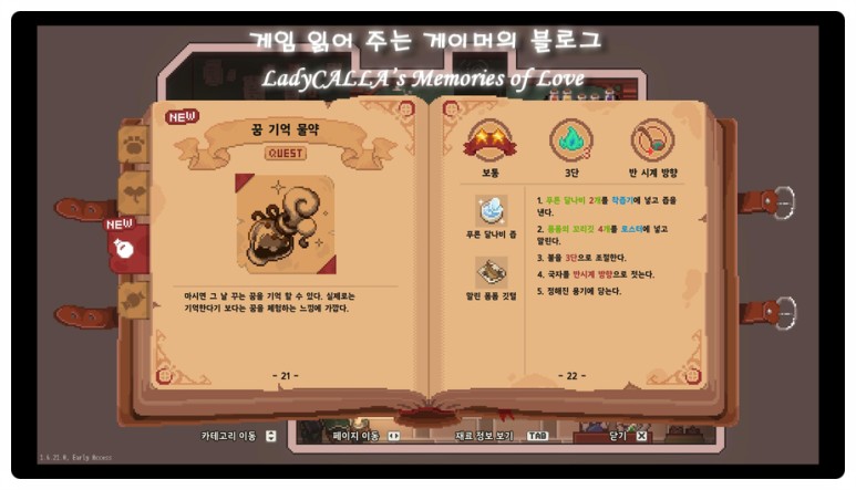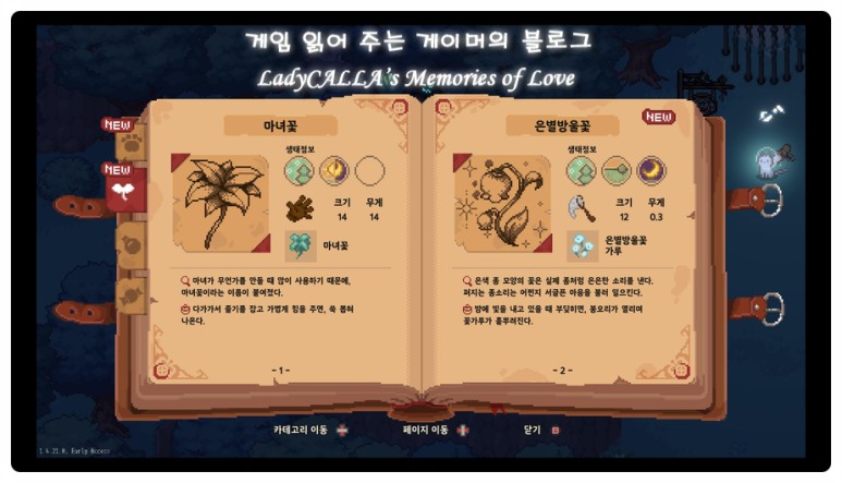 비전투라는 점에서 오히려 스타듀 벨리와 같은 2D 픽셀만의 매력을 강조하된 컨셉 자체는 동숲의 힐링 요소들을 많이 가져온 작품이라 생각합니다.