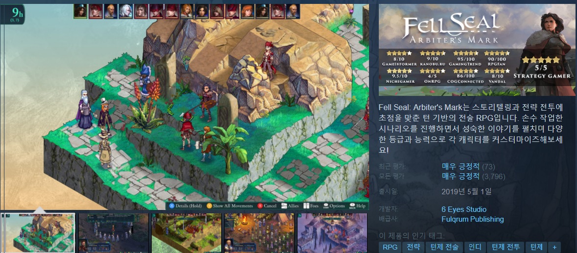 2019년 출시되어 스팀에서 판매되고 있는 SRPG Fell Seal: Arbiter's Mark 입니다.