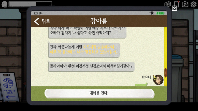 21일 아름이와 주고 받는 아보카톡은 아보카 스토리와는 상관 없는 내용일까요...?