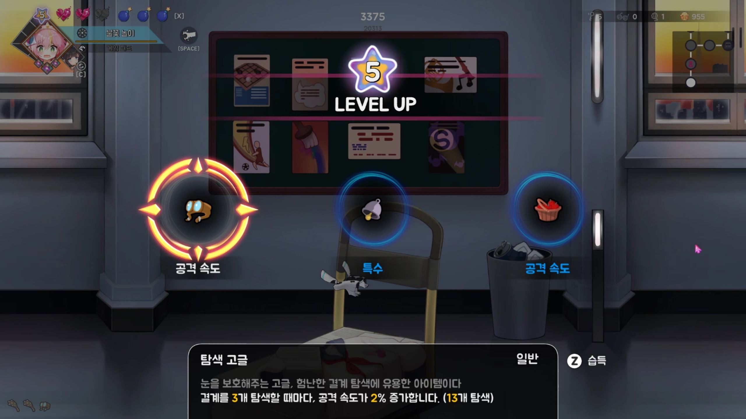 1스테이지의 방 전체 방 개수는 20~25개로 맵 전체를 돌았을 때 위의 아이템은 최소 12~16%의 성능을 가집니다.