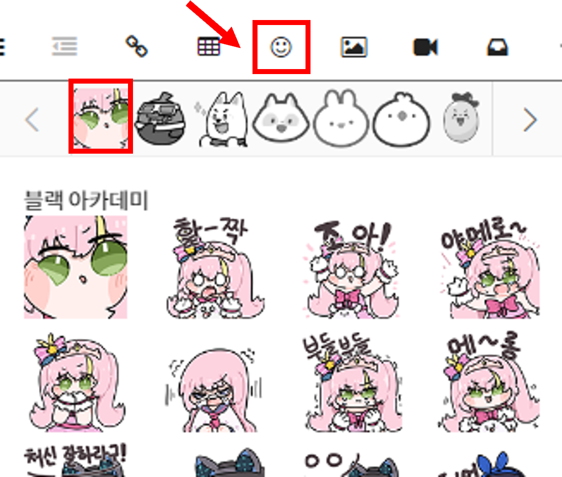 블랙 아카데미 캐릭터들의 귀여운 이모티콘을 만들어주셨어요!