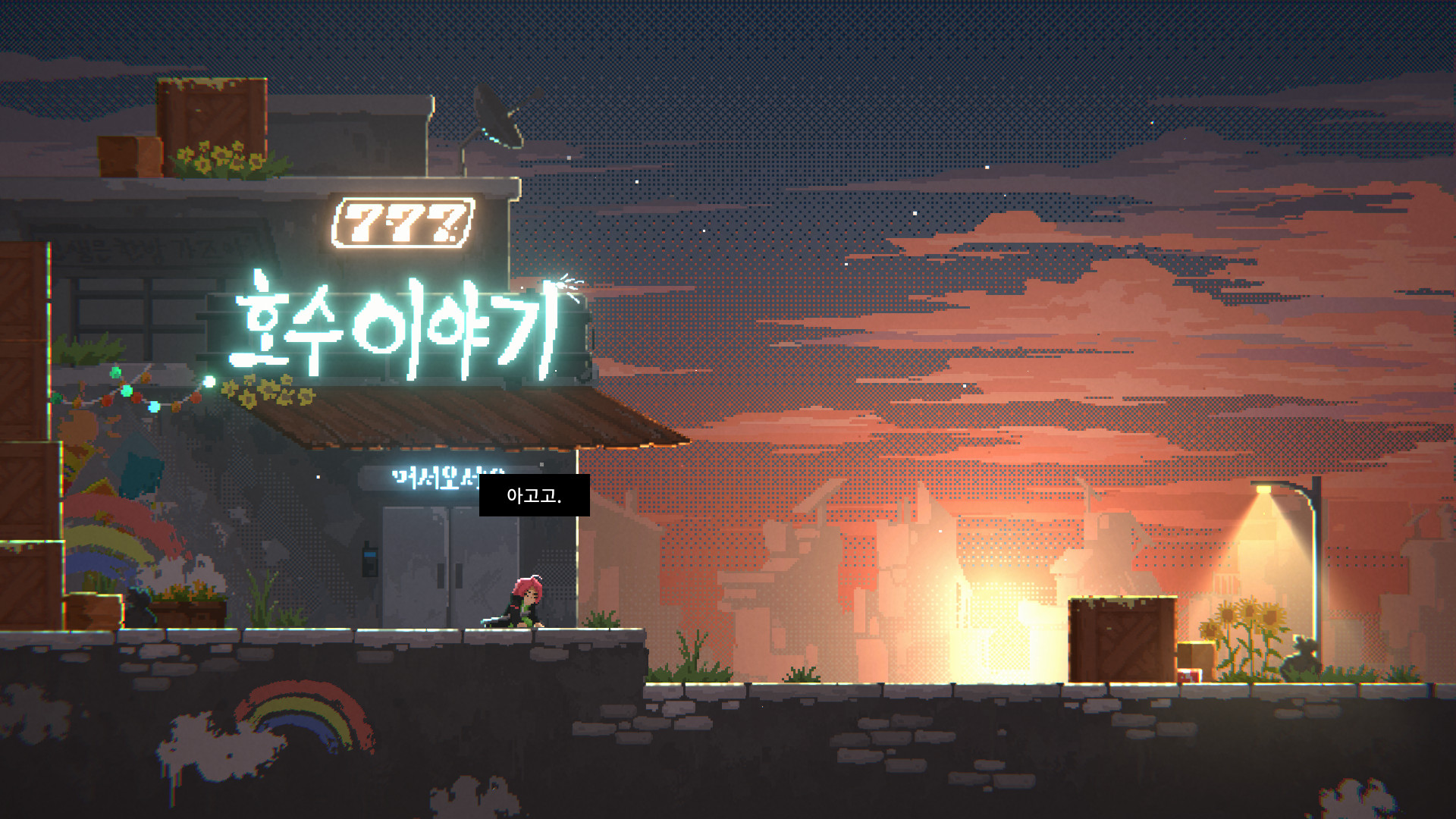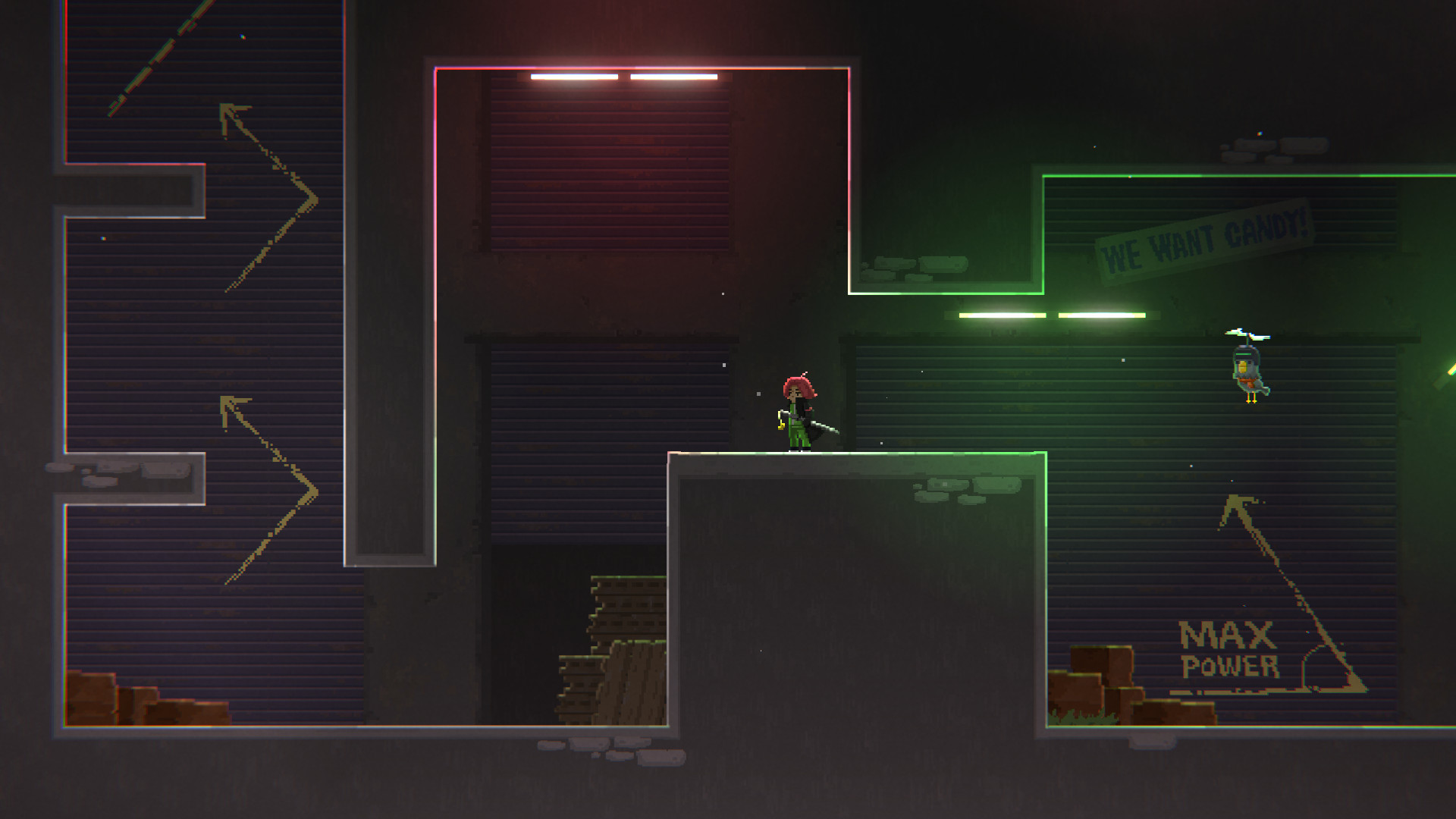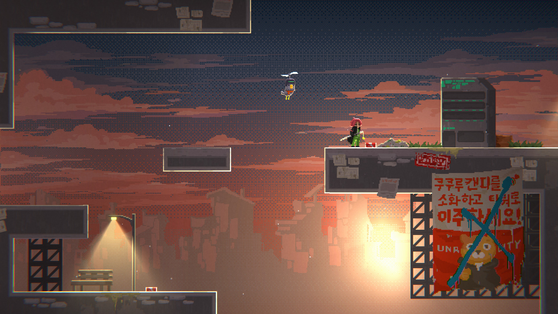 사이버 펑크적인 느낌의 배경과 점프와 공격을 합치고 공격이 튕겨나가서 이동할수 있고 이를 통한 스타일리쉬한 공격등으로 기존 점프킹 류의 게임과 차별화를 한 작품입니다.