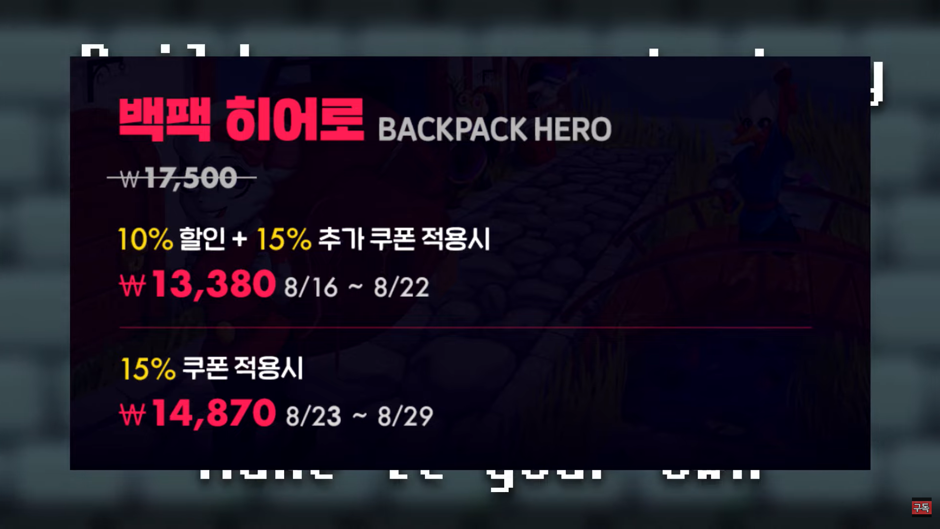 패키지나 콘솔 게임을 좋아하면 구독 필수! 이번에는 꿀잼 로그라이크 게임, [백팩 히어로]를 주제로 영상이 나왔습니다 🎉